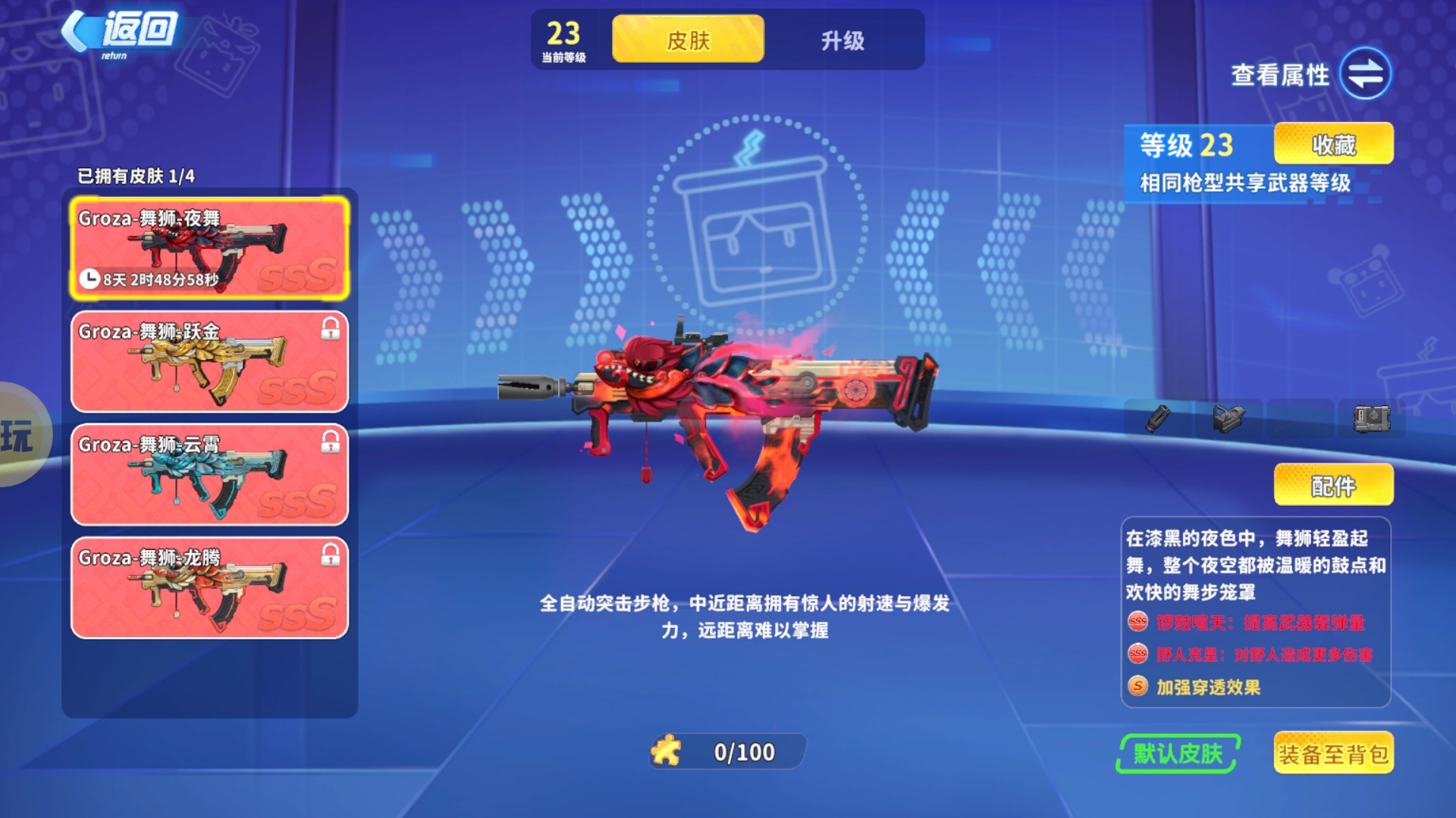 大家好,我是鹤然。今天我给大家讲解一下舞狮夜舞。说起舞狮这种武器,很多人就会想起他的外号“狗杂”。他也是很多人非常想要试一下的武器。他的获取方法就是要把段位打到不朽枪神。打到不朽枪神也不是很难。很多人还是可以达到的。所以他的热度也是不低的。它的热力值仅次于刚新出的武器冰焰双生和旗开得胜,排在所有武器的第18位。回归正题,下面我给大家讲解一下: