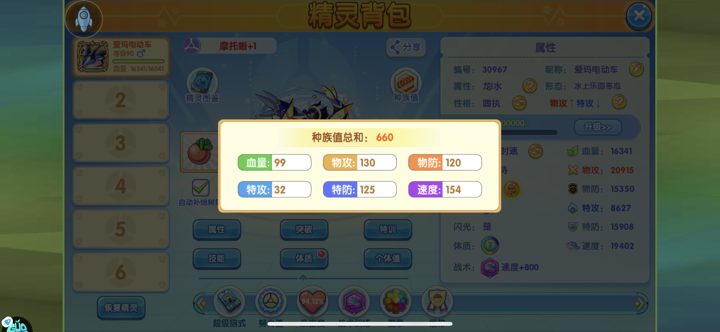 我的摩托蜥80级,紫突破,个体物攻80,努力值没满,总物攻只有12000左右,感觉不高就献祭了