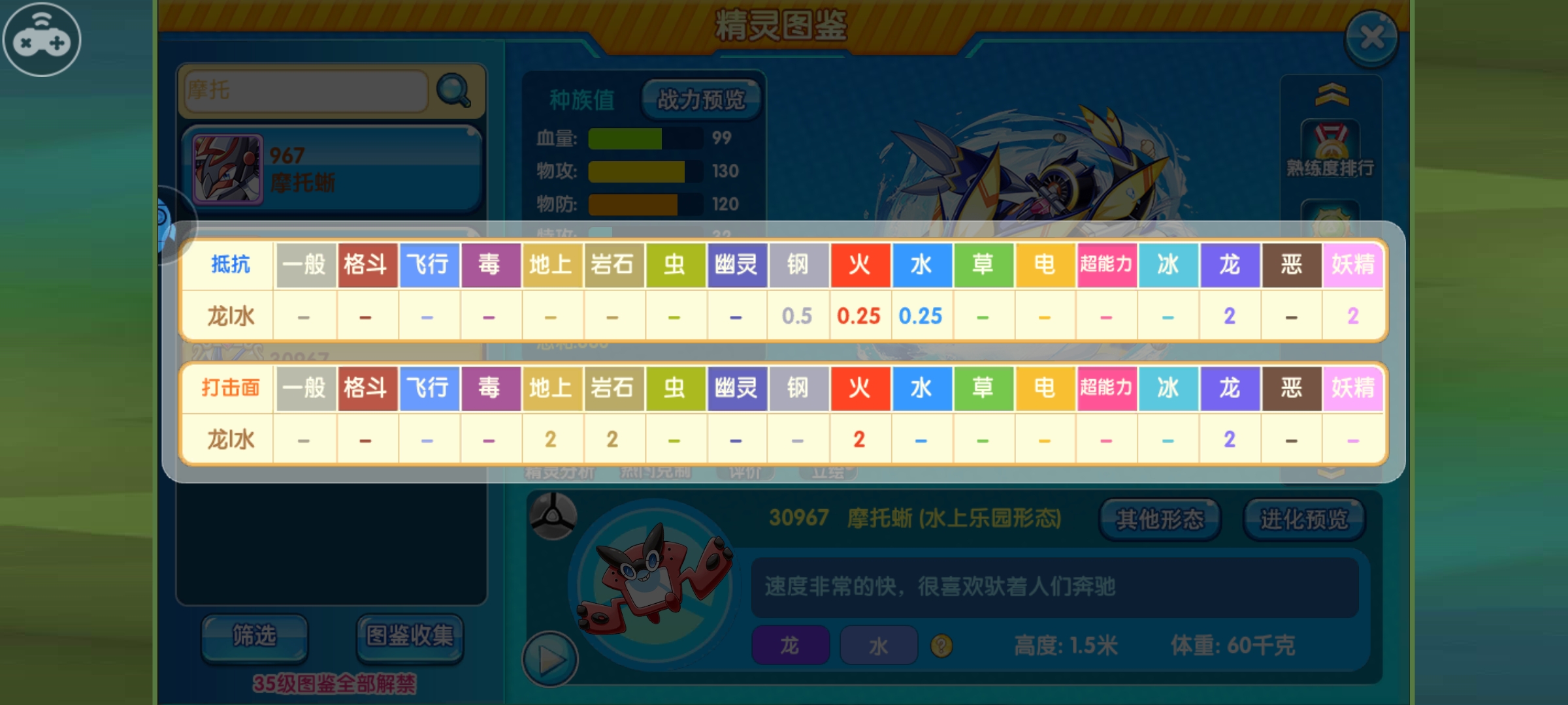 水+龙这个属性最近可是很热门,君不见白嫖的土龙节节在PVP大杀四方,当让我们的摩托蜥也不差,因为这个属性性只有二倍妖精系和龙系两个弱点,但可以抵抗水系、钢系、火系,就属性来说还是非常强大,因为这个抗性,可吃当前版本很多热门的属性系打击,也让它有了输出的余地。