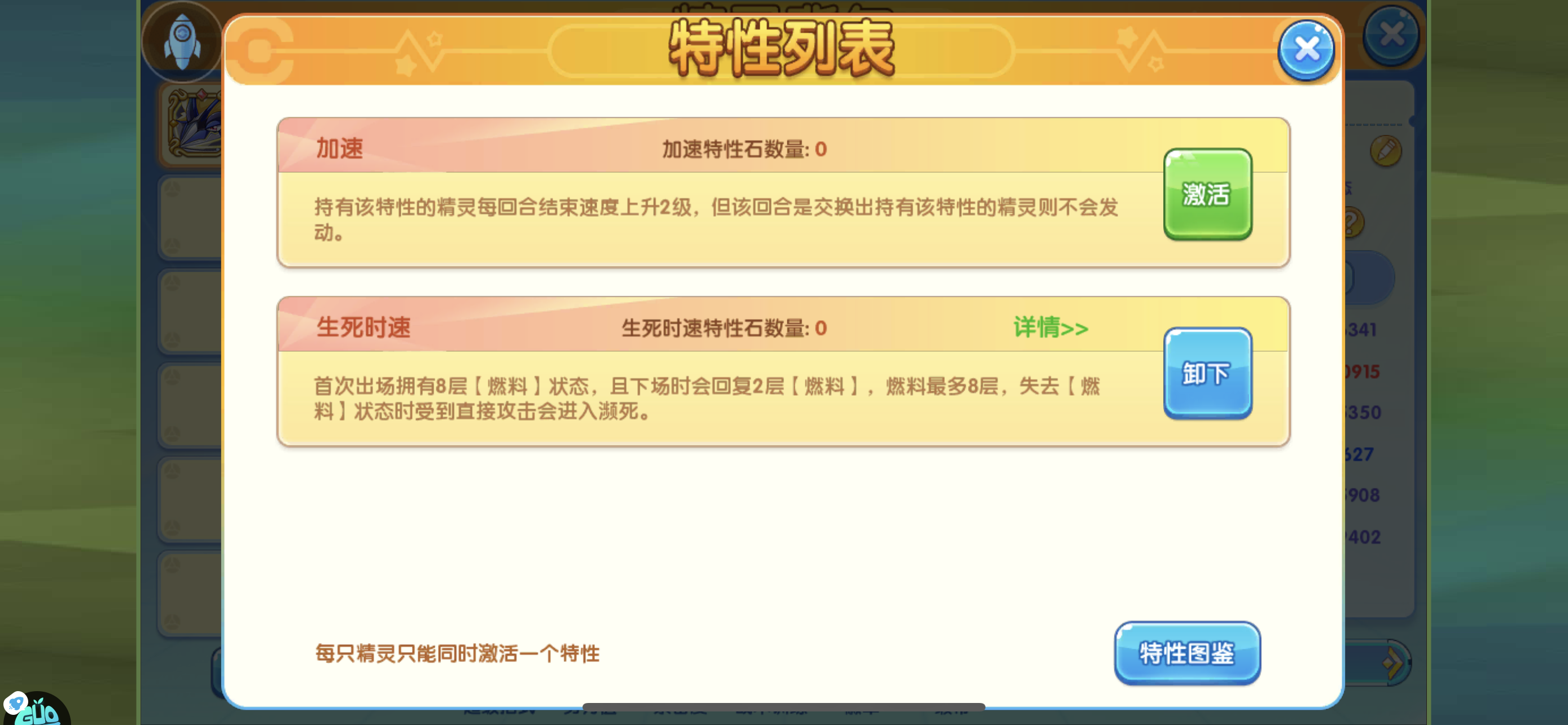 可以看出特性核心效果就是[燃料],这个类似绿茵和迦勒尔闪电鸟的状态效果,我们详细看下,拥有[燃料]时攻击伤害增加100%,受到伤害减少20%,相当于附带减伤的大力士,还有[燃料]大于等于4层时,受到濒死攻击会保留1点血,就相当于带百变腰带效果,还剩了个道具位,这时候获得物攻,速度+1,让你可以绝地反击,不过[燃料]为0层时状态消失,使用时候注意,在自身使用攻击技能或受到直接攻击时都会消耗1层[燃料]。