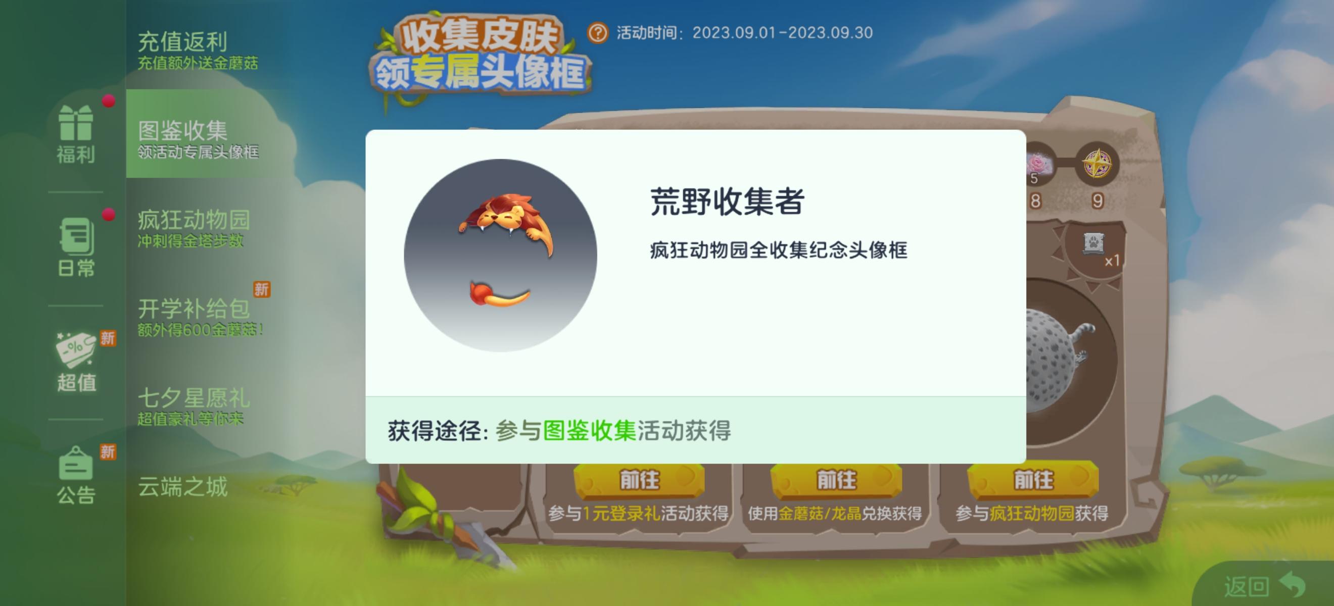作为波拉哩收藏家,目标当然是点亮皮肤味全图鉴啦~图鉴收集任务开启,收集图鉴上的对应皮肤,点亮完成图鉴任务,即可赢取头像框【荒野收集者】、道具【金塔步数】等豪华大礼。
