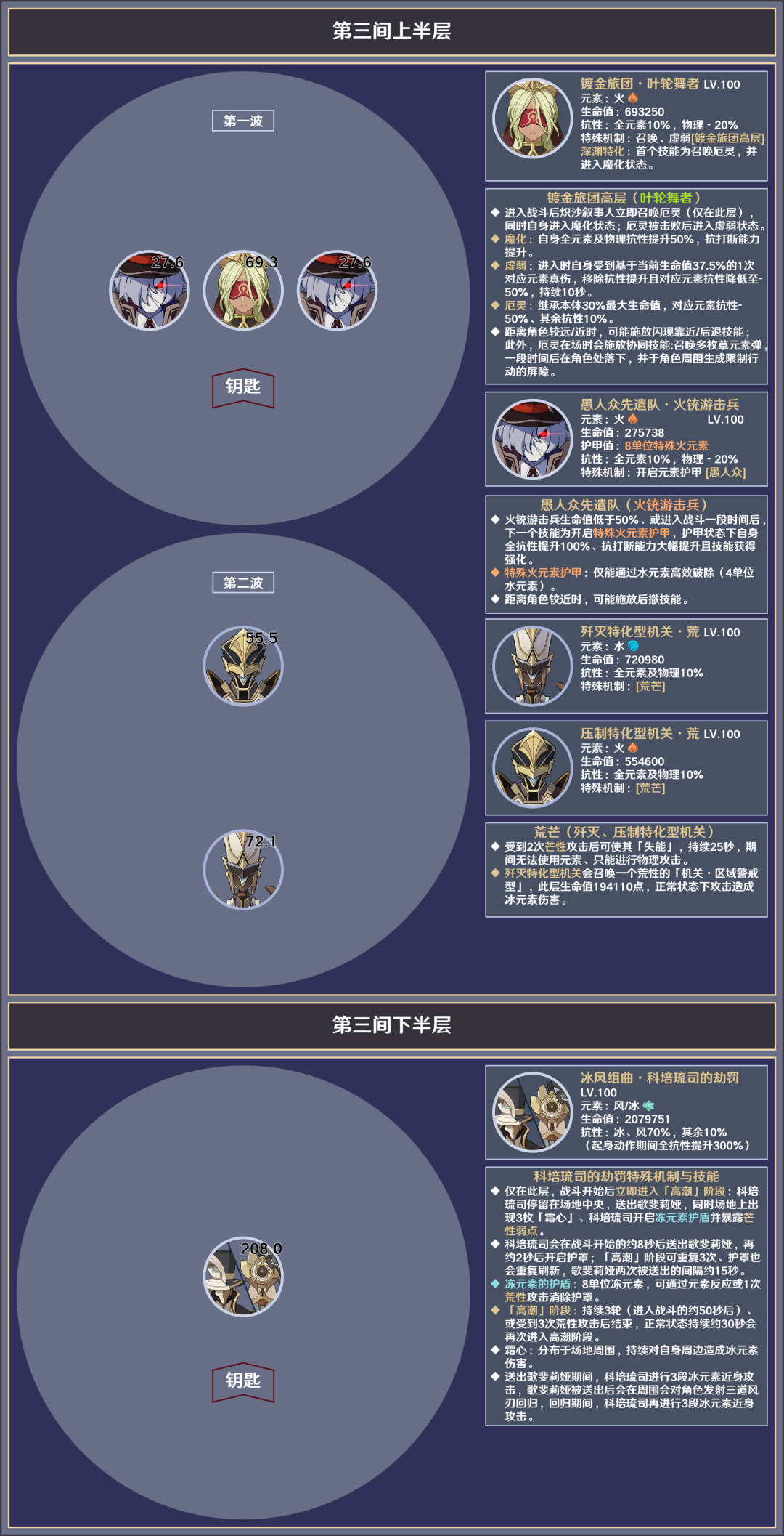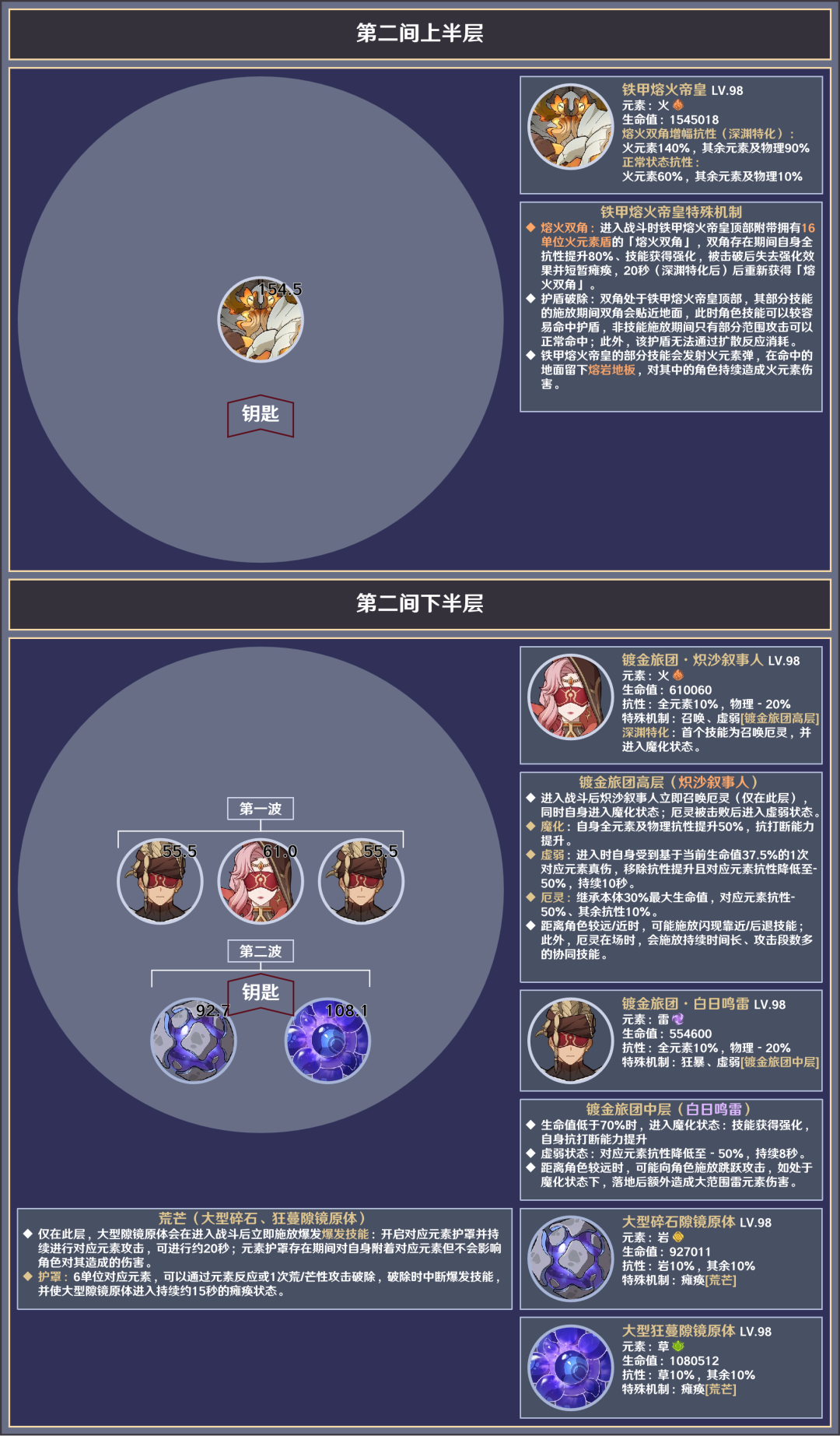 原神·深境螺旋丨23.9.1敌人信息与站位参考,知己知彼方能战胜~原神 - 新闻星发布于 2023-09-02关注 渊月祝福第一期:角色的生命值恢复时,该角色的攻击力提升10%,此效果持续10s,至多叠加3层,每层独立计时。角色的生命值降低时,该角色的元素精通提升40点,此效果持续10s,至多叠加3层,每层独立计时。角色生命值恢复与降低触发的效果分别独立存在,独立计时。第二期:角色的生命值恢复或降低时,该角色获得40%所有元素伤害与物理伤害加成,持续3s。作者:原神西风驿站