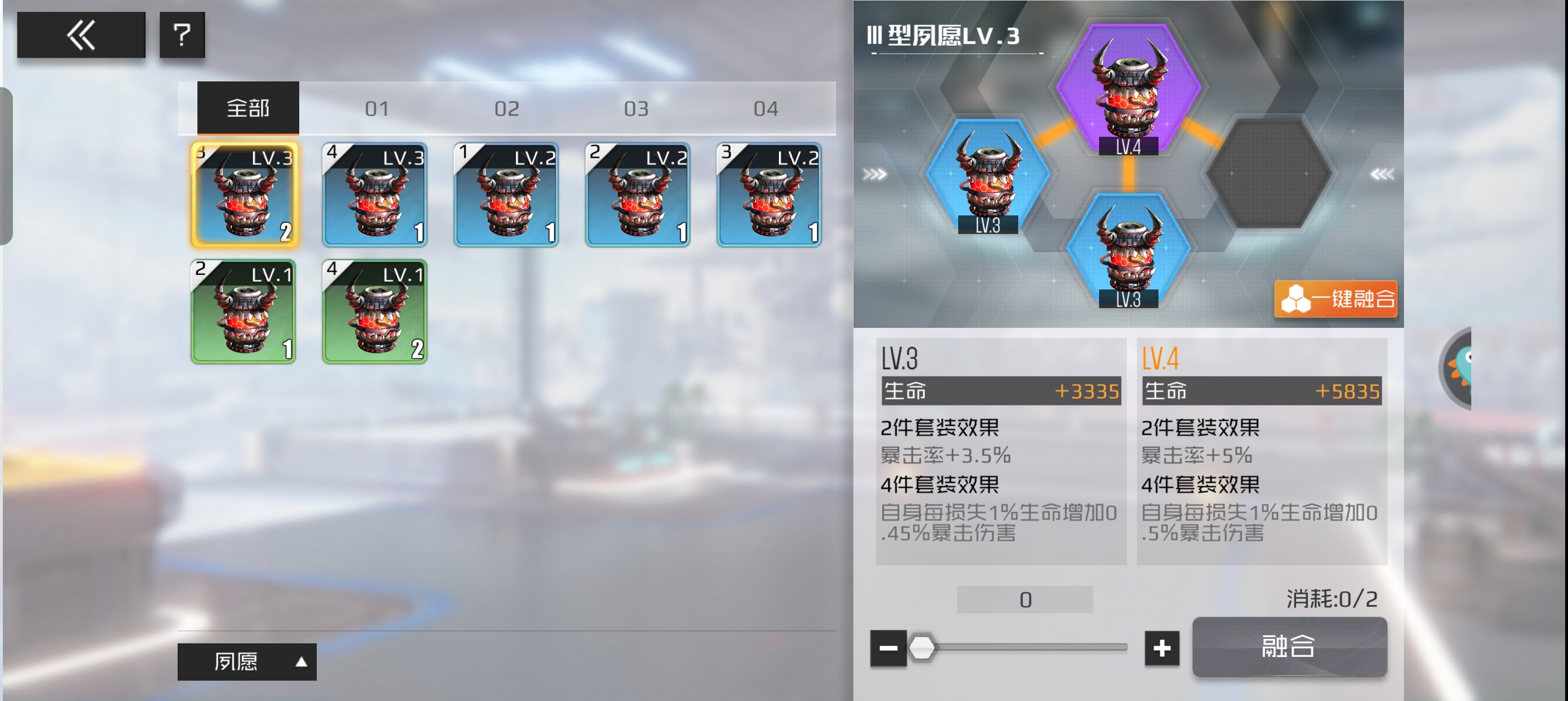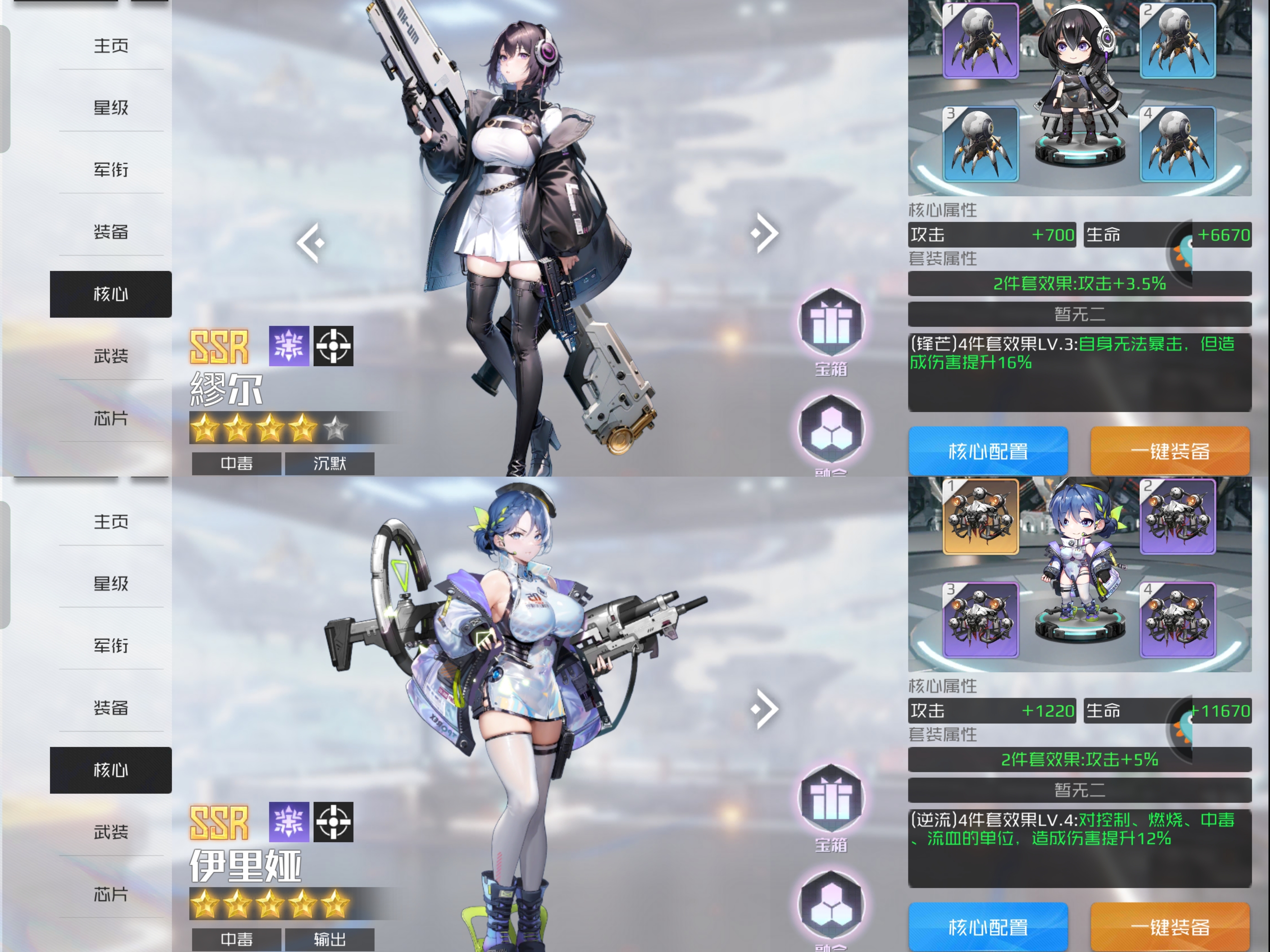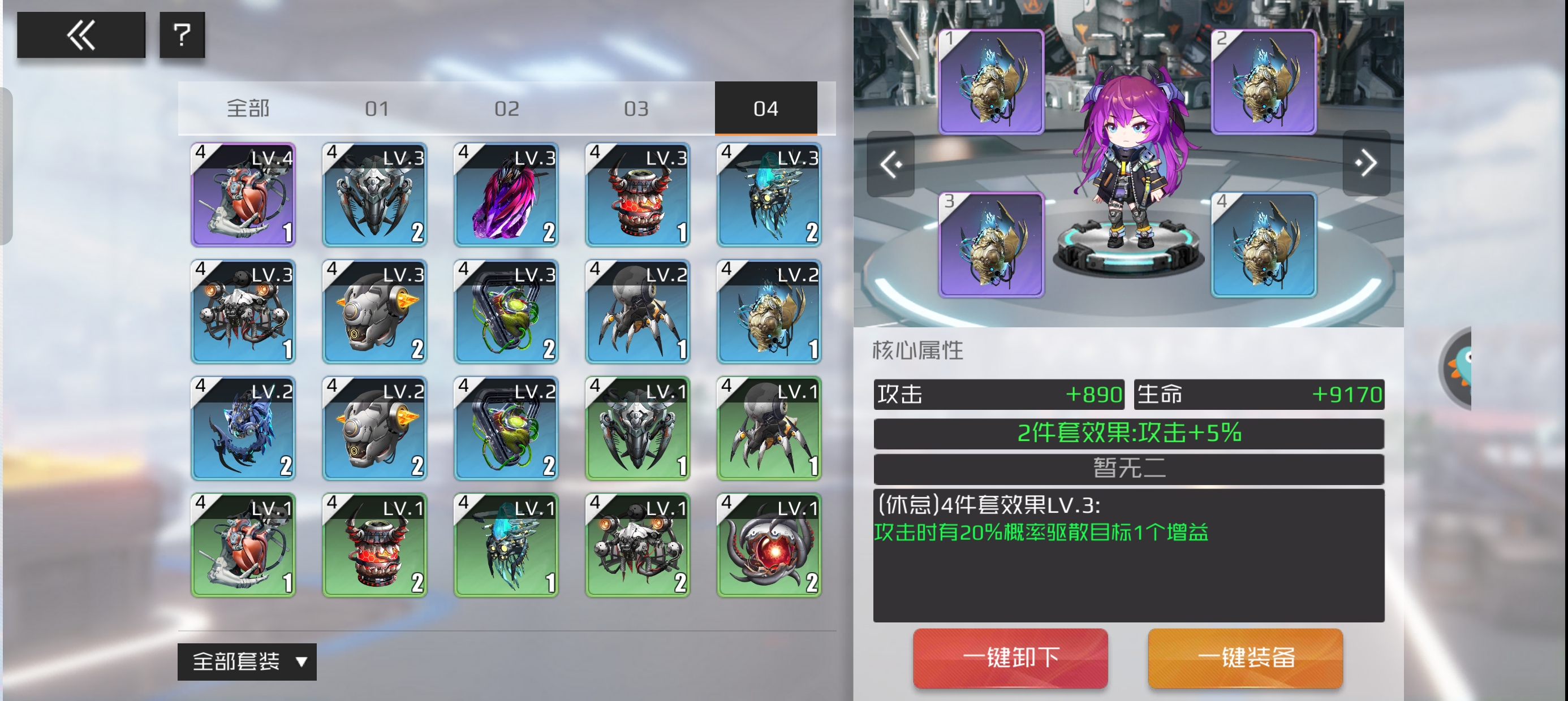 以4件套为基础去搭配,核心等级可以低,但是必须激活4件套的属性效果。