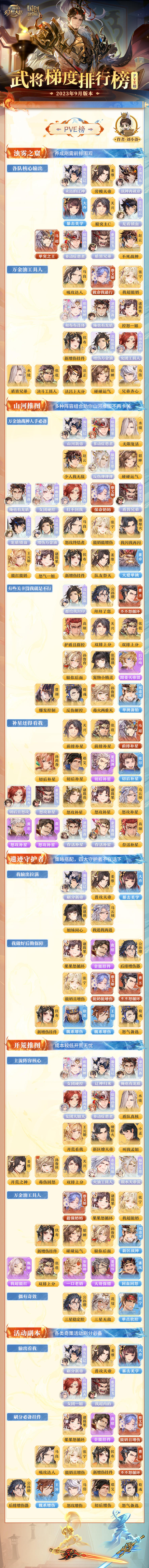 玩家攻略|当前版本推图刷分哪家强?武将梯度排行榜第十弹(PVE篇)