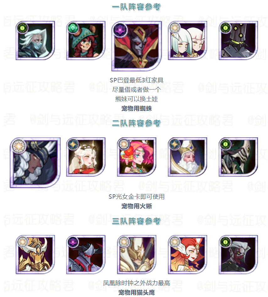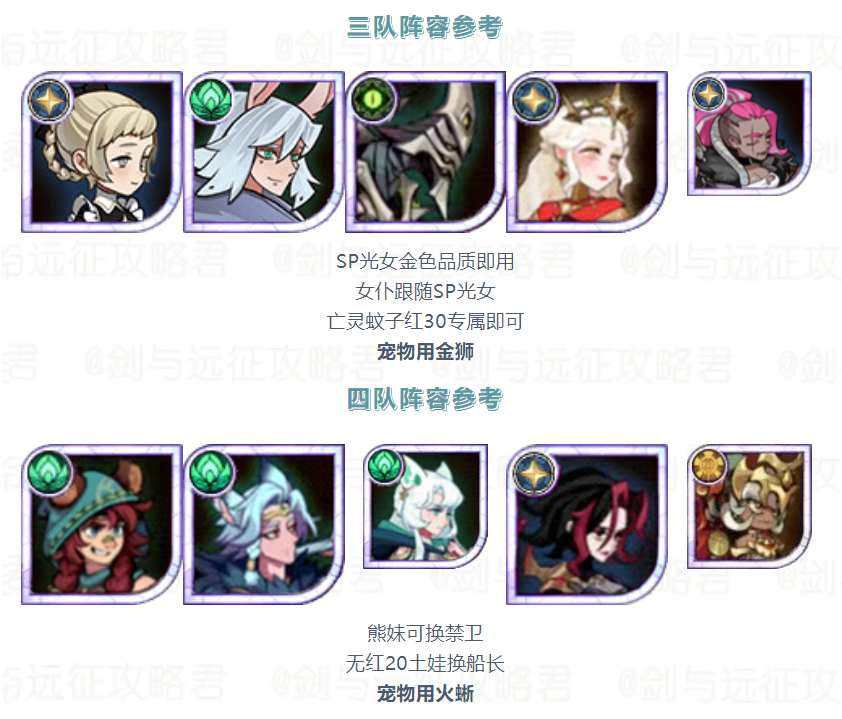 【活动向】本期竞速&诅咒梦境 荒火骑士 阵容参考建议剑与远征 - 攻略星发布于 2023-09-04关注诅咒梦境阵容参考诅咒梦境较为吃练度和生命树量力而行 切勿上头本期生命树酌情洗坦克树 竞速梦境阵容参考 平民作业分享——狐小鱼 宠物依次是娃娃鱼 飞蛾 金狮 火蜥 海豹 猫头鹰 作者:光环剑与远征攻略君