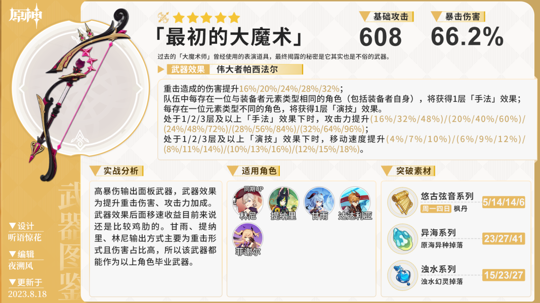 原神·武器测评丨最初的大魔术——重击弓手皆可用,来看看和各自专武相比的差距
