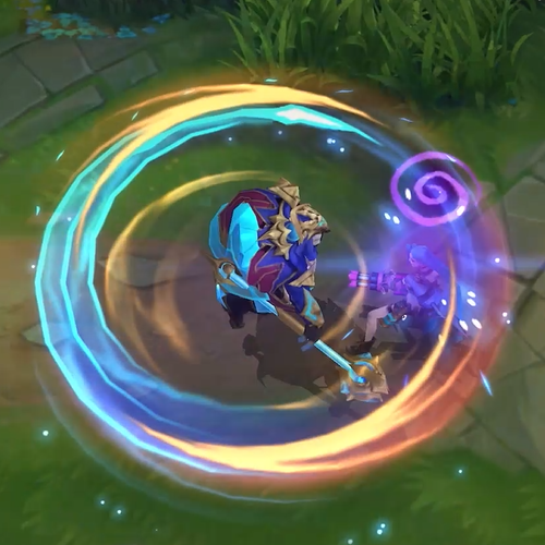 贾克斯将力量汇聚至权杖的顶部,在神秘的星象符号展开后,权杖顶部的宝珠会短暂显露,使贾克斯下次普攻或跳斩附带额外伤害。
