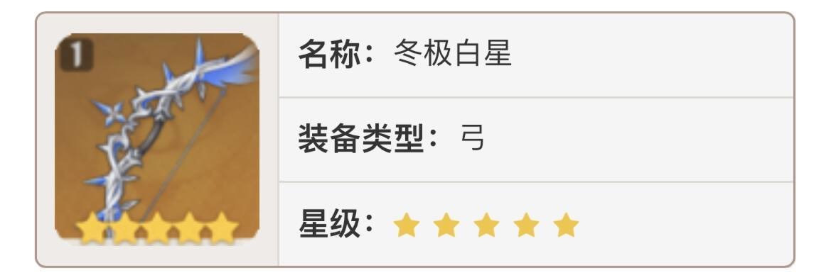 5.冬极白星:推荐公子玩家优先抽4.0版本上半武器池,捞若水血赚,歪魔术弓也不亏,属于能用范畴;如果一定要强抽冬极白星,建议做好歪贯虹的心理准备,在能接受歪贯虹的前提下尝试抽取。
