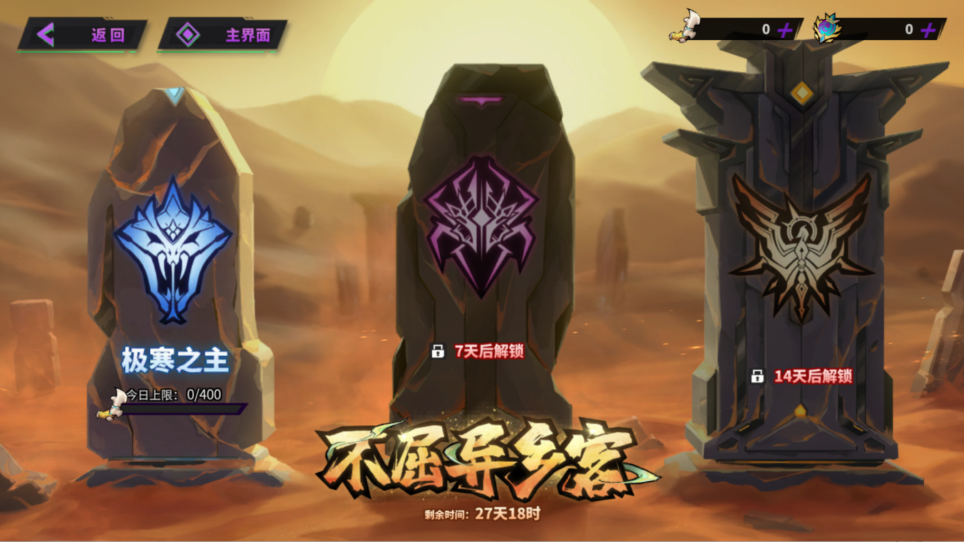 活动期间,每周将解锁一章不屈异乡客关卡,挑战成功可获得「风化脊骨」,「风化脊骨」可用于在“沙洲遗宝“中兑换奖励。怎么一周才一章根本不够啊!