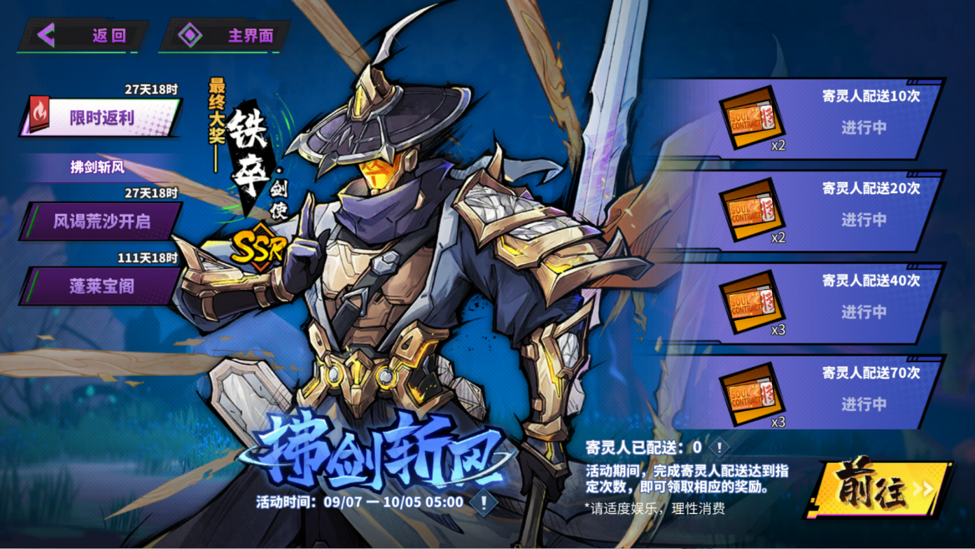 《镇魂街:天生为王》全新版本「逐猎荒沙」于今日9月7日上线!全新SSR角色「铁卒·剑使」正式登场,限时UP卡池「剑气断山河」已开启,卡池中「铁卒·剑使」出现概率特别提升!近距离物理输出,持剑无名对阵万敌、裂风突击万剑归宗!