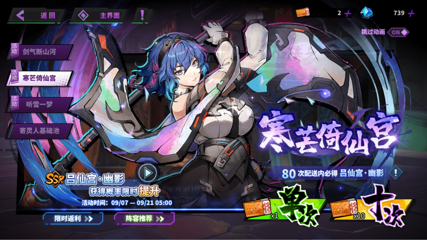限时活动期间,SSR寄灵人「吕仙宫·幽影」出现概率特别提升。出生起就单推吕仙宫了抽爆!