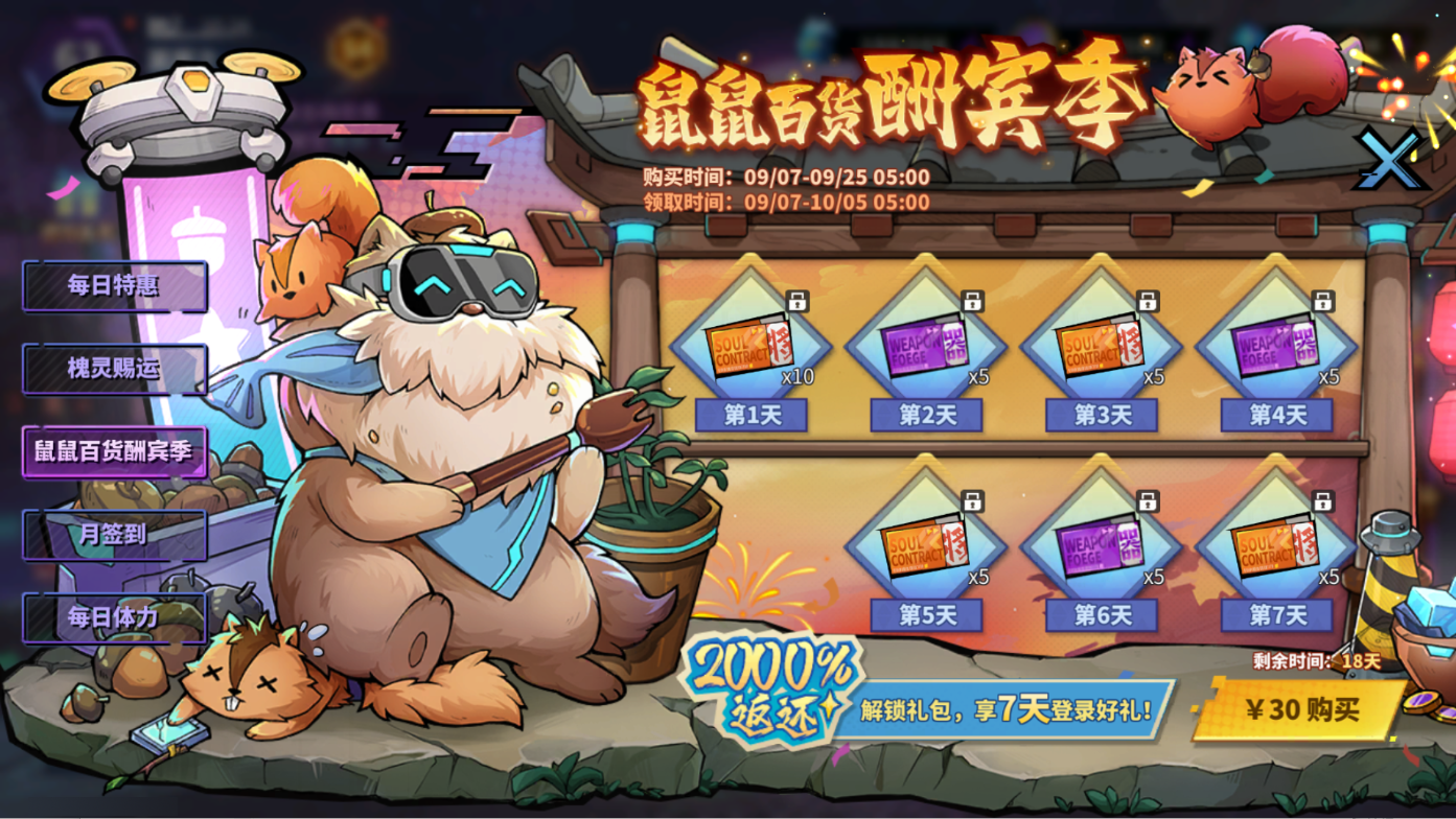 活动期间解锁礼包,可领取7天登录奖励,奖励中包含大量「灵将契约券」与「武器锻造券」。鼠鼠我啊又来开百货哩~