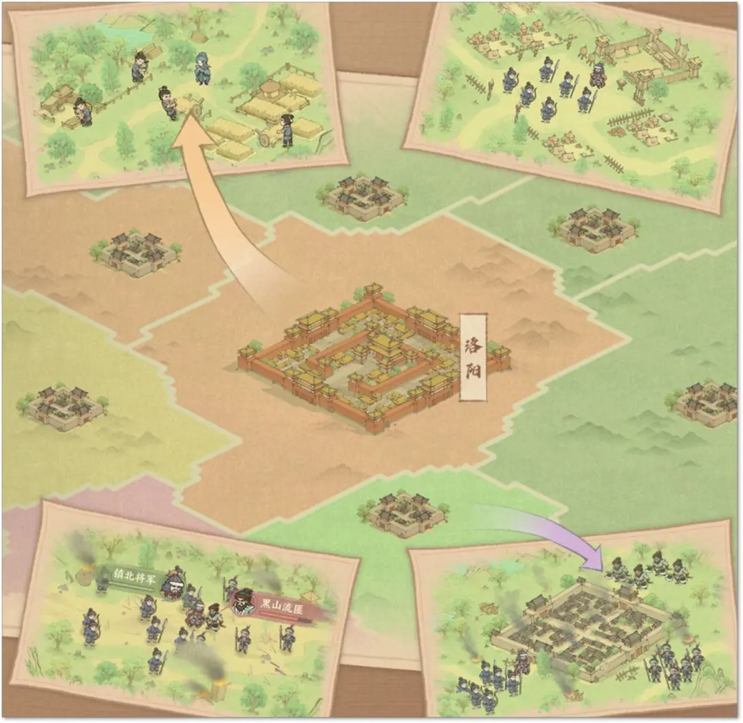 自九州动乱后,几次劫祸使得朝廷元气大伤,不少野心之辈借机拥兵自重,占据一方,与各方势力形成掎角之势,割据混乱时代到来,朝廷无力整治,各地百姓被肆意鱼肉,为扫清祸乱,拯救黎民,需加入藩镇争夺,以一己之力,努力扭转割据局面,还天下与百姓……