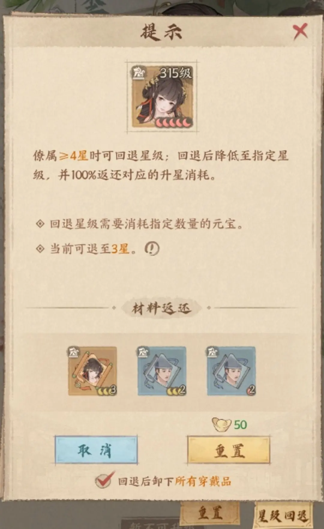本周更新后,城主们可通过该系统对4级僚属进行星级回退;回退后将返还所有对应的升星消耗!