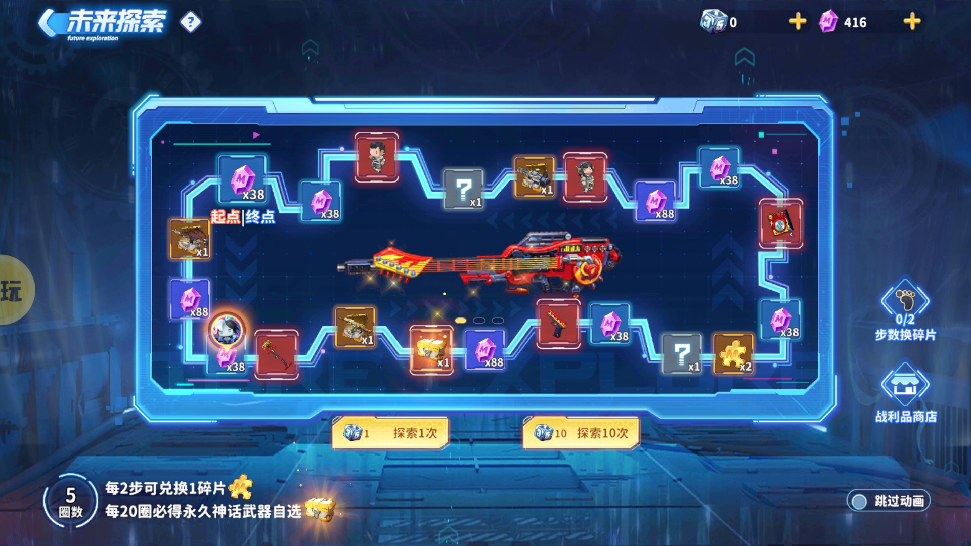 大家好,我是鹤然。大家都知道未来探索是唯一一个在迷你枪战精英里面能获取神话武器的渠道。但是要获取他需要走20圈。需要的钻石数量也是相当的多的,很多人不确定要准备多少的钻石,今天我就给大家讲一下需要的钻石数额吧。
