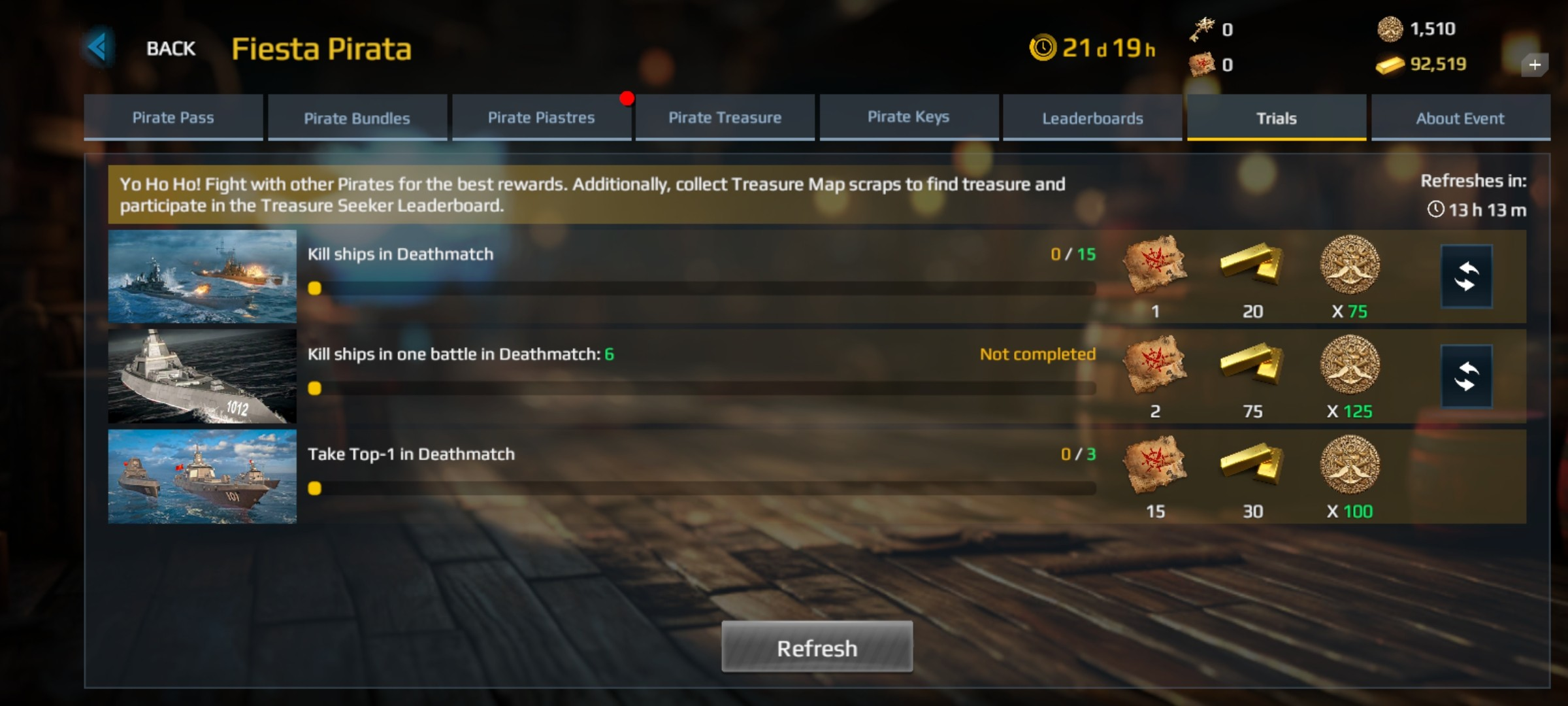 1、通过完成活动试炼来与其他海盗竞争。