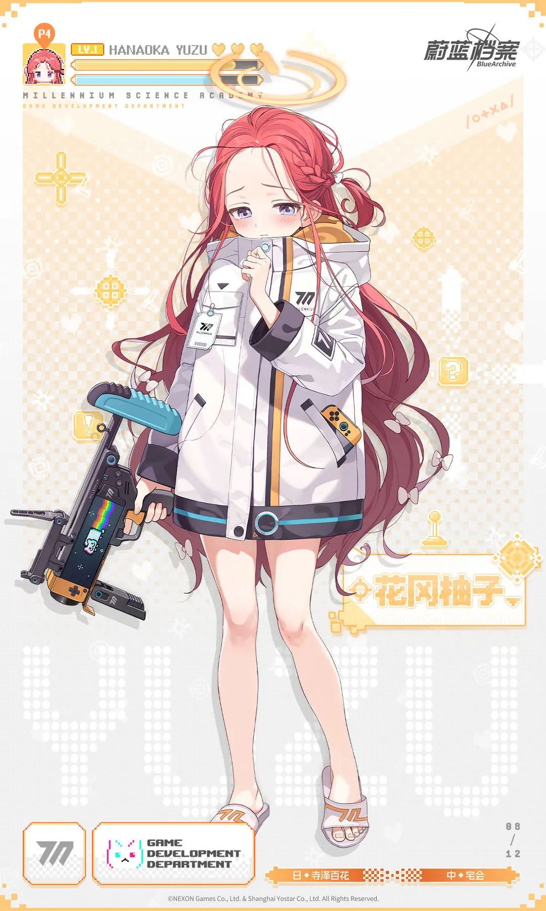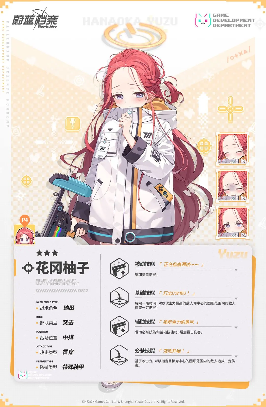 【新增人物档案】花冈柚子白喵岚岚发布于 2023-09-11关注 //////////档案启封//////////■ 花冈柚子千禧年游戏开发部的部长。患有社交恐惧症的少女,害怕跟人接触,大部分时间都在游戏开发部的柜子里度过。但论起对游戏的热情,她不会输给任何人。喜欢制作游戏与玩游戏。“多亏了老师……可以稍微……放心一点了。”
