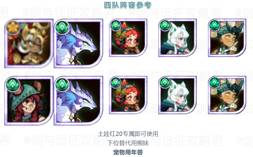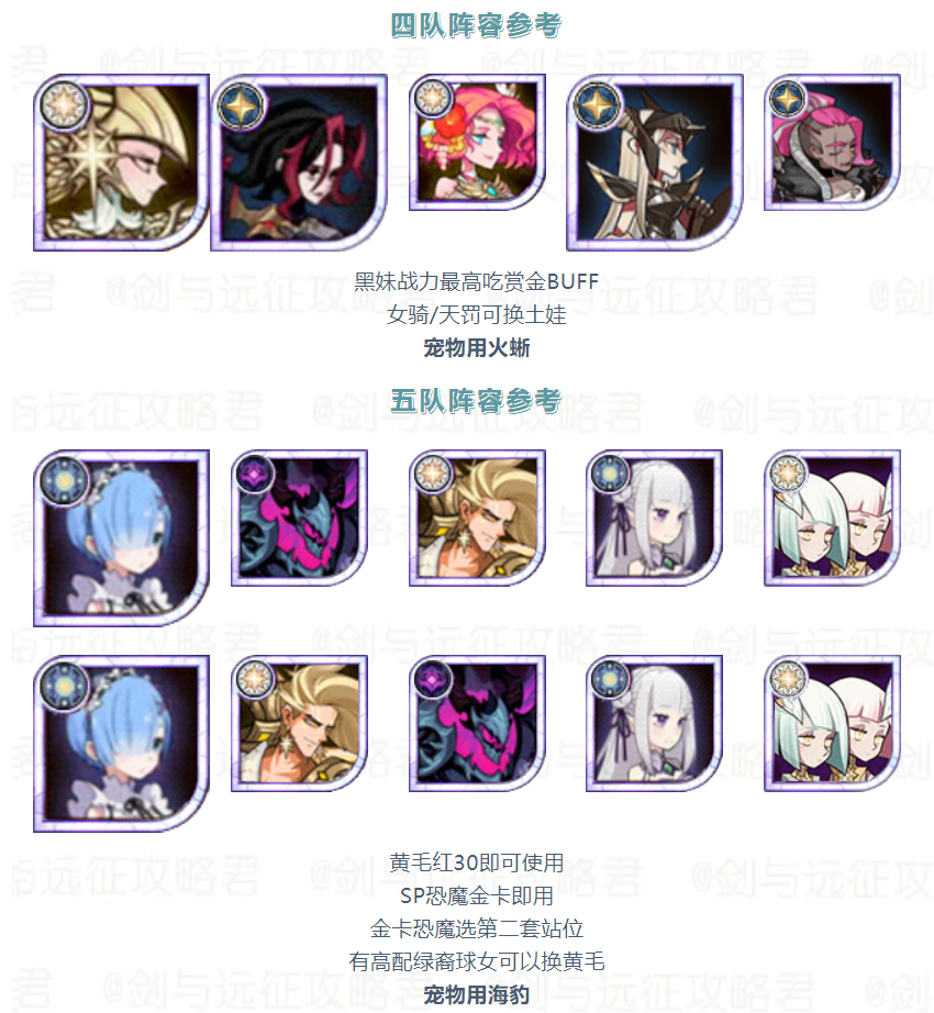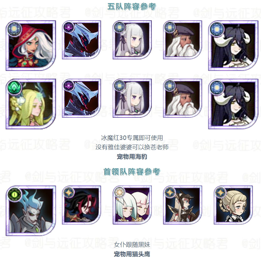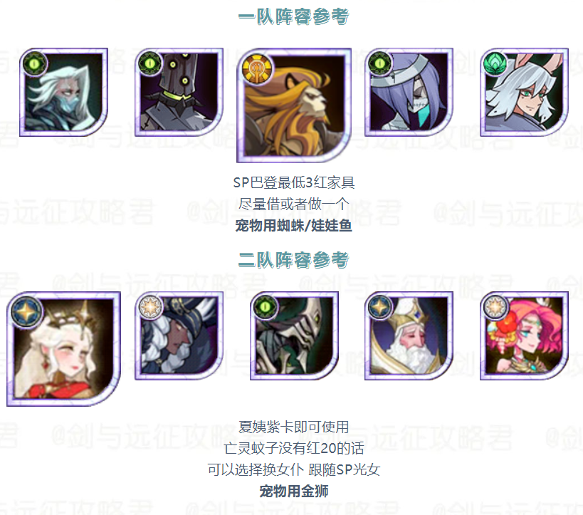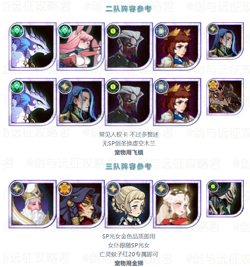 【活动向】本期竞速&诅咒梦境 霜魂女妖 阵容参考建议剑与远征 - 攻略星发布于 2023-09-11关注诅咒梦境阵容参考诅咒梦境较为吃练度和生命树量力而行 切勿上头本期生命树酌情洗坦克树 平民作业分享——狐小鱼 红20亡灵蚊子换女仆夏神紫卡即可使用没蕾姆可以换母狮子宠物依次是娃娃鱼 金狮 盾蜥 年兽 海豹 猫头鹰竞速梦境阵容参考 平民作业分享——狐小鱼 宠物依次是娃娃鱼 飞蛾 金狮 火蜥 海豹 蜘蛛 作者:光环剑与远征攻略君