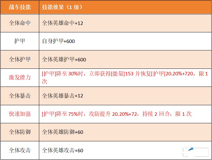 铁幕君主的战车技能主要围绕攻击和防御属性的提升,并且拥有大量的全体提升属性,是优先升级的对象。