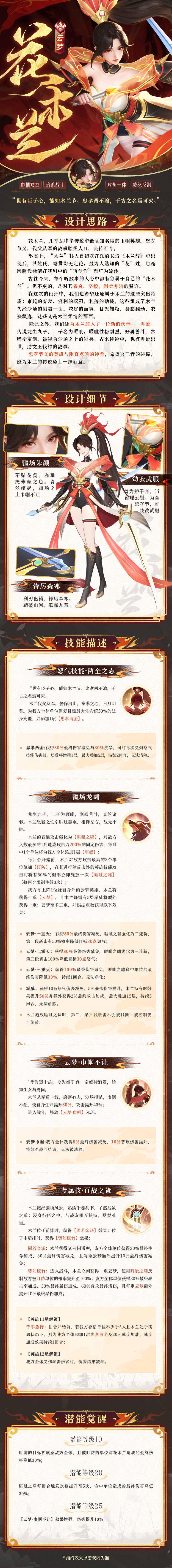 接上回书说道,云梦系列的首位英雄,正是千古流芳的巾帼英雄——花木兰。