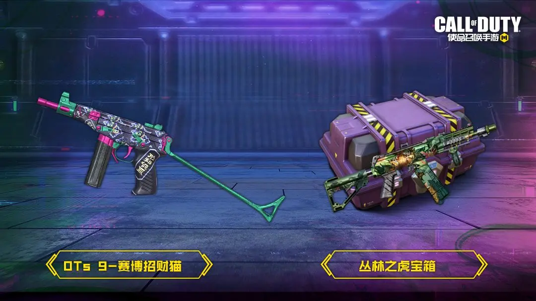 9月13日,周末登录礼来袭,战士们完成指定任务,即可领取丛林之虎宝箱以及稀有级武器:OTs 9-赛博招财猫。