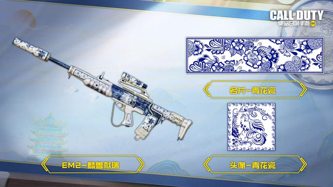 打开宝箱保底40抽必中史诗级武器:EM2-麟兽献瑞!还能领取名片-青花瓷、头像-青花瓷等好礼。