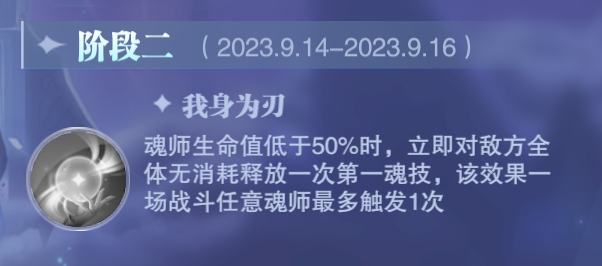接着第二个buff是魂师生命比例低于50%时可以立刻释放1技能,这个buff对于部分具有强力1技能输出或辅助能力的角色或有较大的帮助,例如唐烈、尘心、SP尘心、玉天恒、海龙等角色,高星级情况下一个1技能就有不低的概率把对方带走或打残;又例如辅助角色中的白沉香、唐月华、鬼魅等,1技能不仅能拉条可能还会有额外的一些伴随效果,使用后便可以让我方占据行动条优势等。