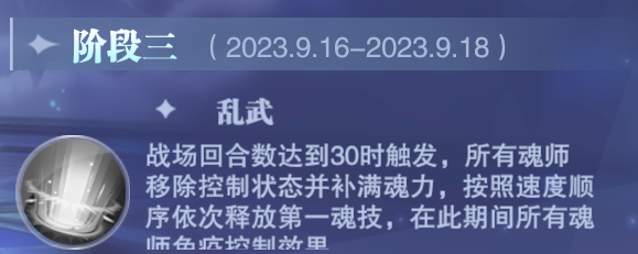 接着第三个效果就更......有运气成分了,回合数达到30回合时即可触发所有魂师按照速度释放1技能攻击,考虑到这种无限制的输出环境,海马、叶泠泠等具备复活能力的角色将会是第三天的优选代表,其中特别是海马这种防御力不仅很高,还可以复活一大片的神辅,在当天的活动中应该会占据非常大优势,另外大家就尽量上阵1技能具有更强输出与辅助效果的角色即可。