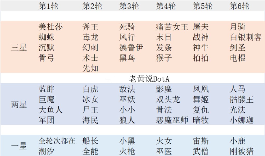 最后附上老黄收集整理的目前6轮命定英雄组合,十分凑巧的是,怀旧服和先锋服的轮次是刚好对上的,这里也算是一波千里眼了,可以知道后面的命定池子情况。