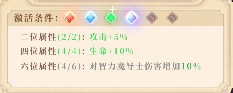 那就只要上阵这四种颜色的能量石就可以激活法阵属性。