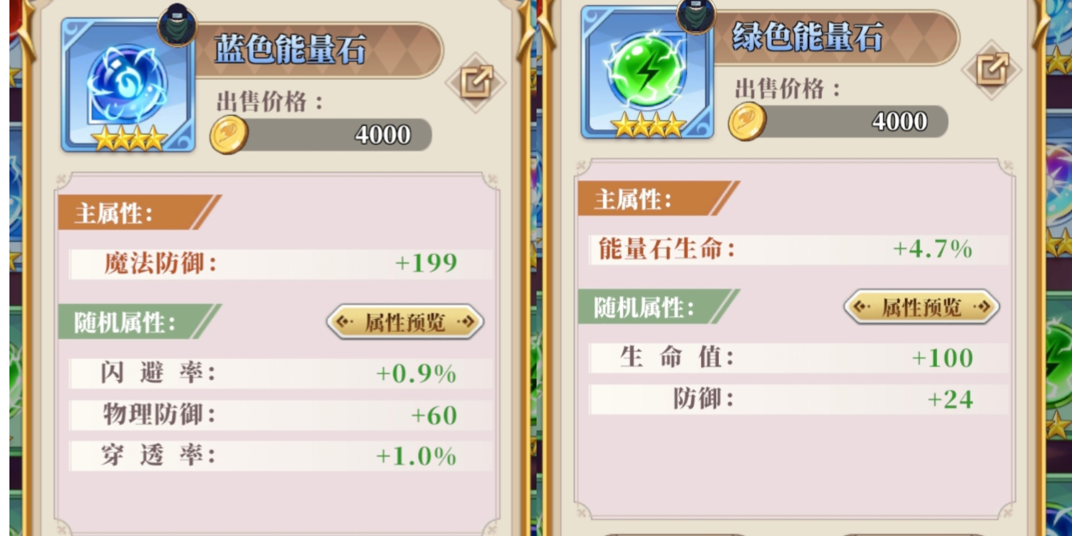 能量石的星级影响着属性值,星级越高,主属性和副属性的加成也就越高。