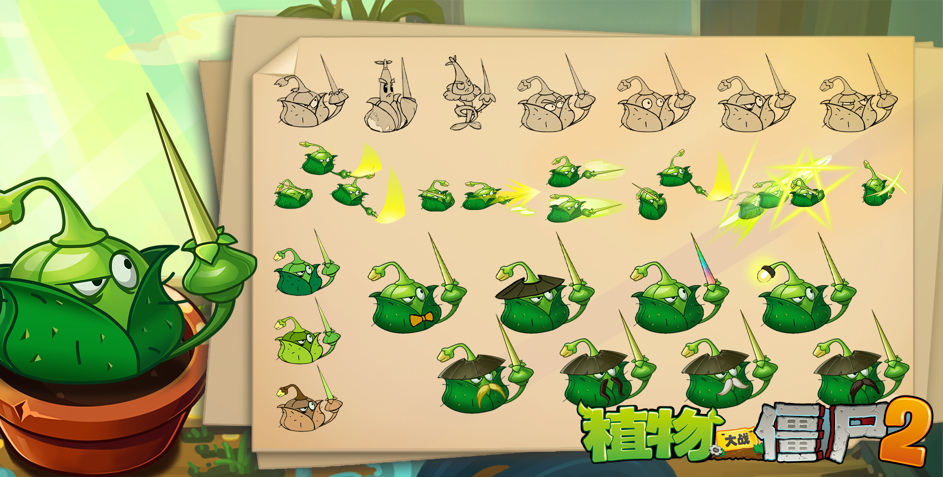 鹳草击剑手其实应该叫做老鹳草击剑手,原型来自于一种田野里可能会见到的中草药。根据植物的外貌特征以及本次设计初期定下的“击剑”关键词,制作组将老鹳草与击剑手进行了结合,并设计了不同的表情、形象方案。