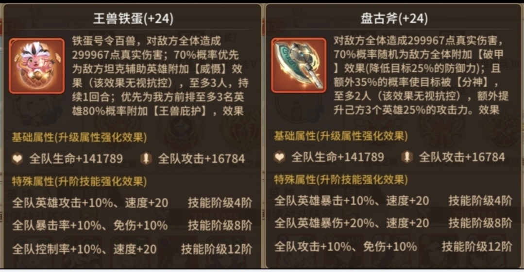 神器神器有条件首选铁蛋或者盘古斧,提供的加成最高,效果也很不错,铁蛋应对哪吒更是有一战之力。如果是平民的话推荐选择弓箭、瓶子、拳套,增强队伍坦度,从而保证持久的输出能力。