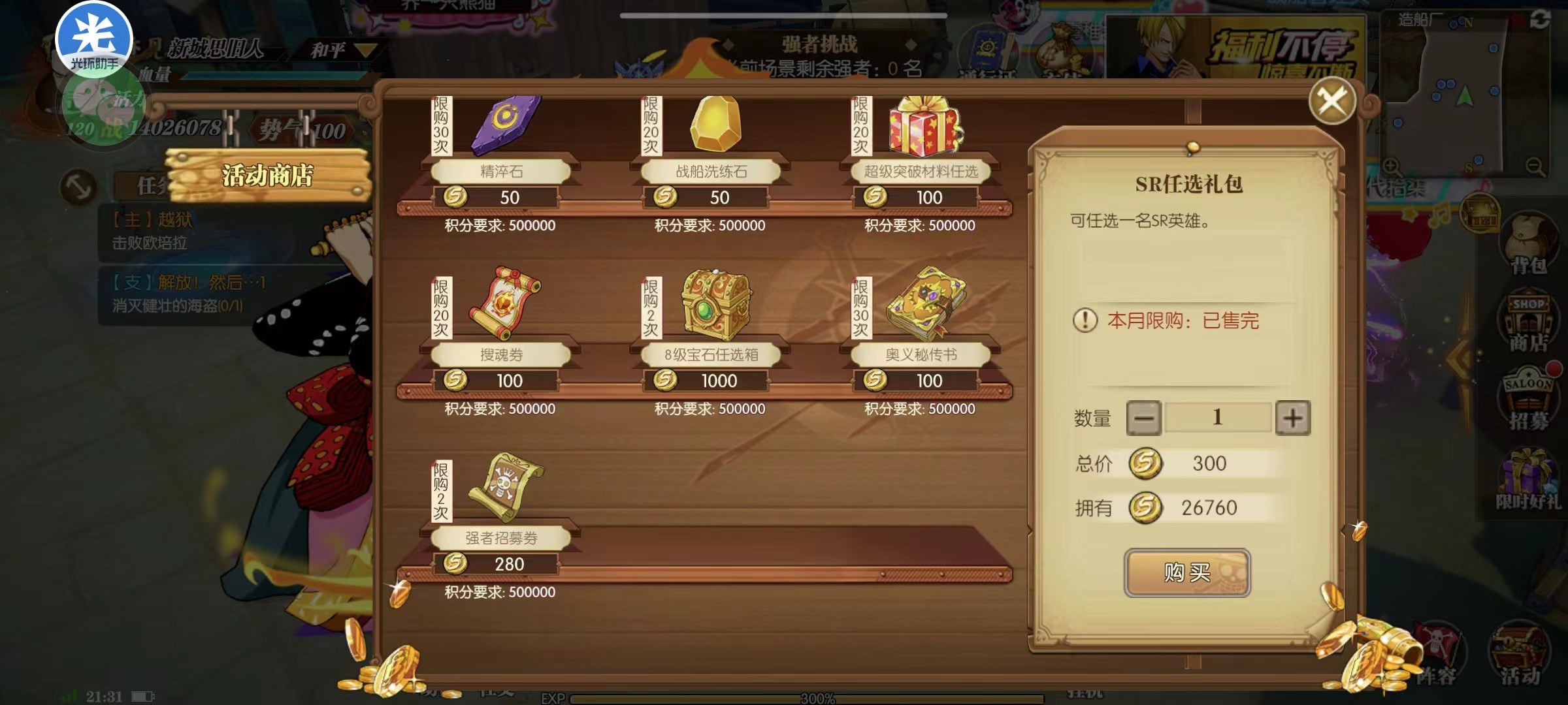 这个活动奖励老王觉得主要看两个,一个是UR券一共有20张,另一个是凯多碎片有60个,其中一半是可以直接换的,另一半需要分数到达一定的值才能开启兑换(类似海岛的买白团),剩下的就是强者和金魂了,这个老王不多说了,主要还是凯多和UR,当然有凯多的兄弟们就换其他的吧!SR的箱子里面有所有的SR,想要凑图鉴也行