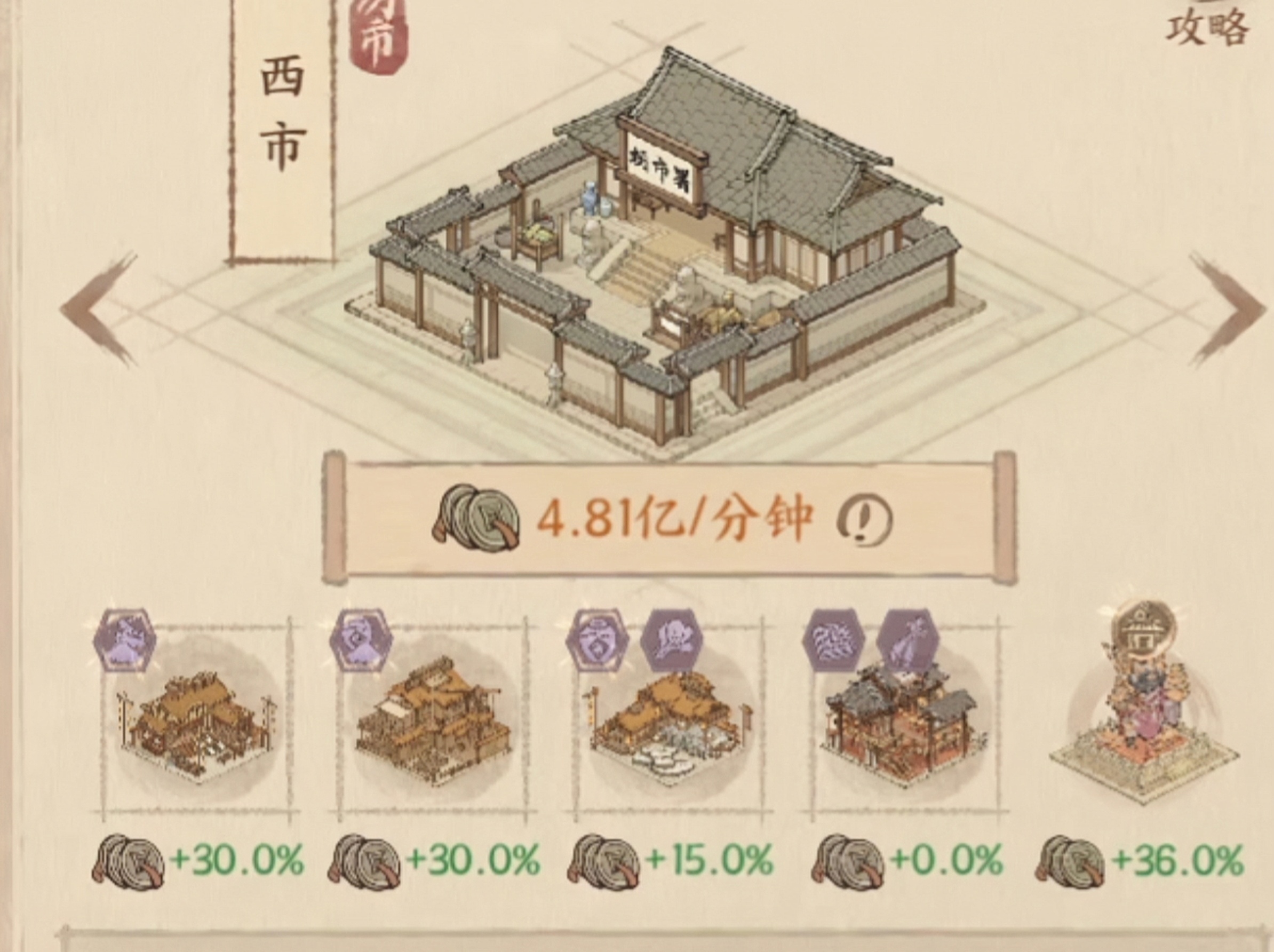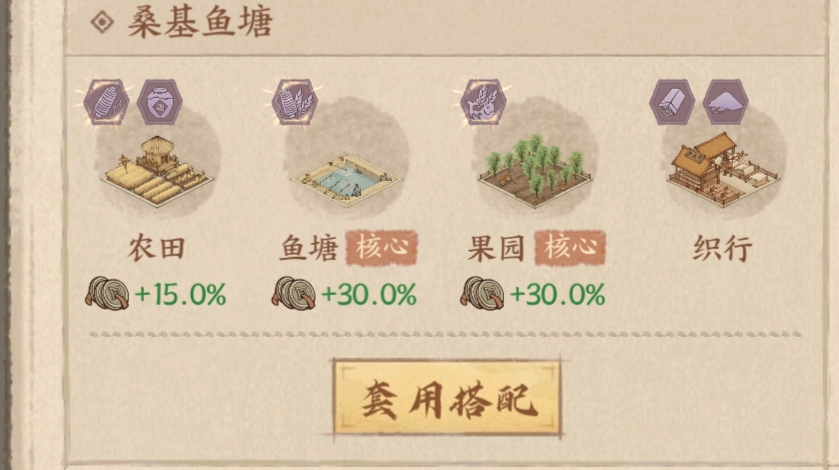 比如:最简单的【锄头像】经营条件是农,那么搭配坊市的时候,这个坊市的产业核心税收就就是是农业方向的,这样的收益才是最大化的。