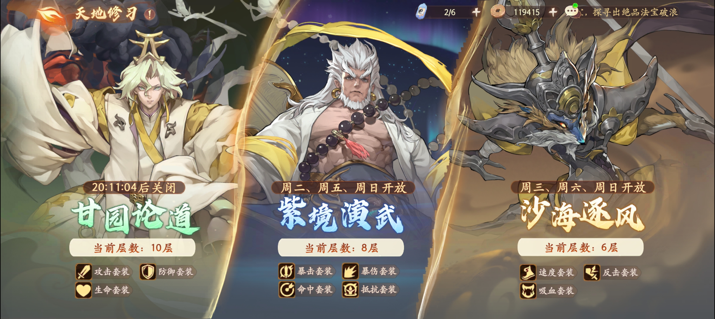 之前在第二期的玩法视频中也详细说明了挑战模式的玩法【天地修习】是我们获得角色装备的主要渠道。想了解的【天地修习】的小伙伴可以去第二期的视频中进行查看哦!