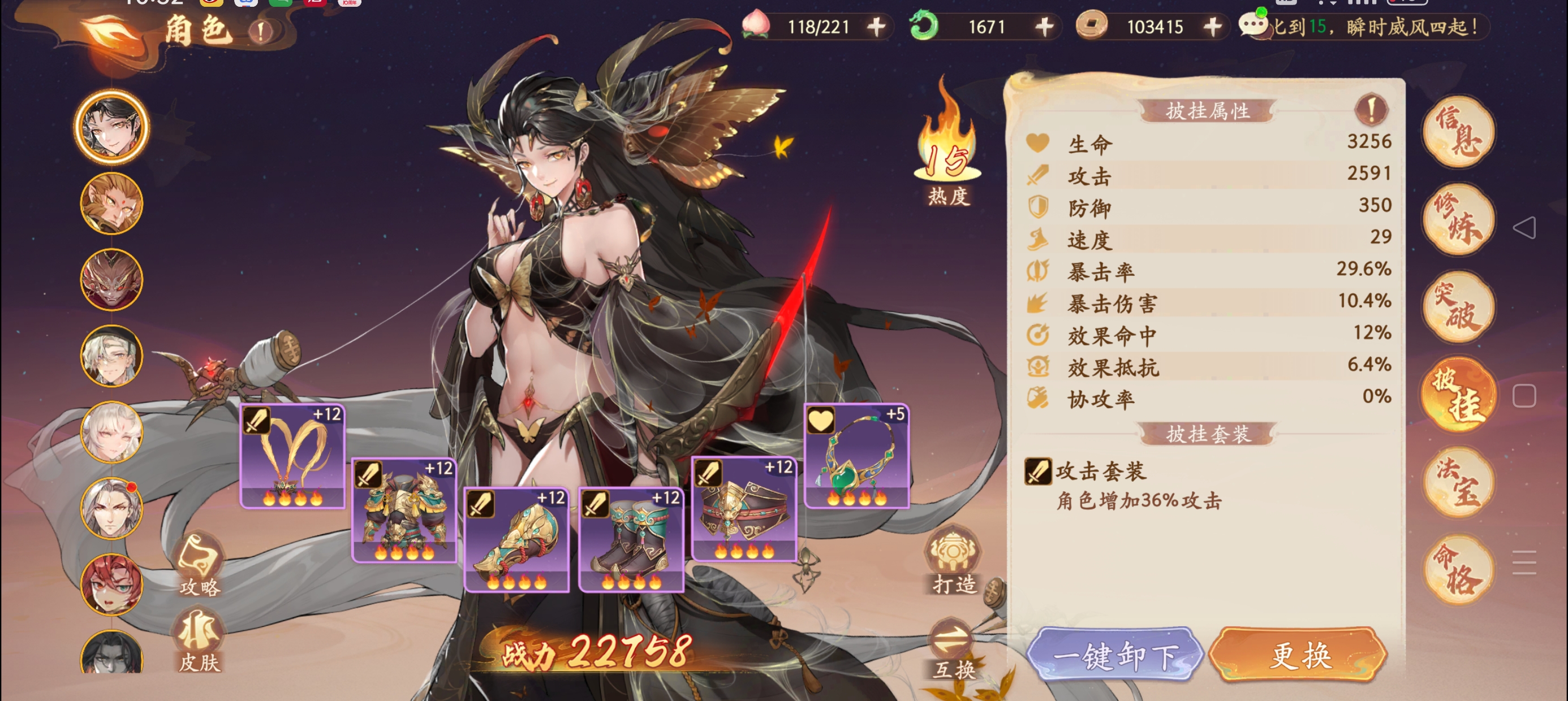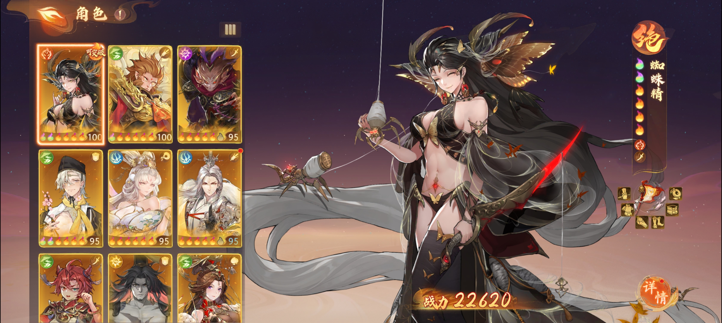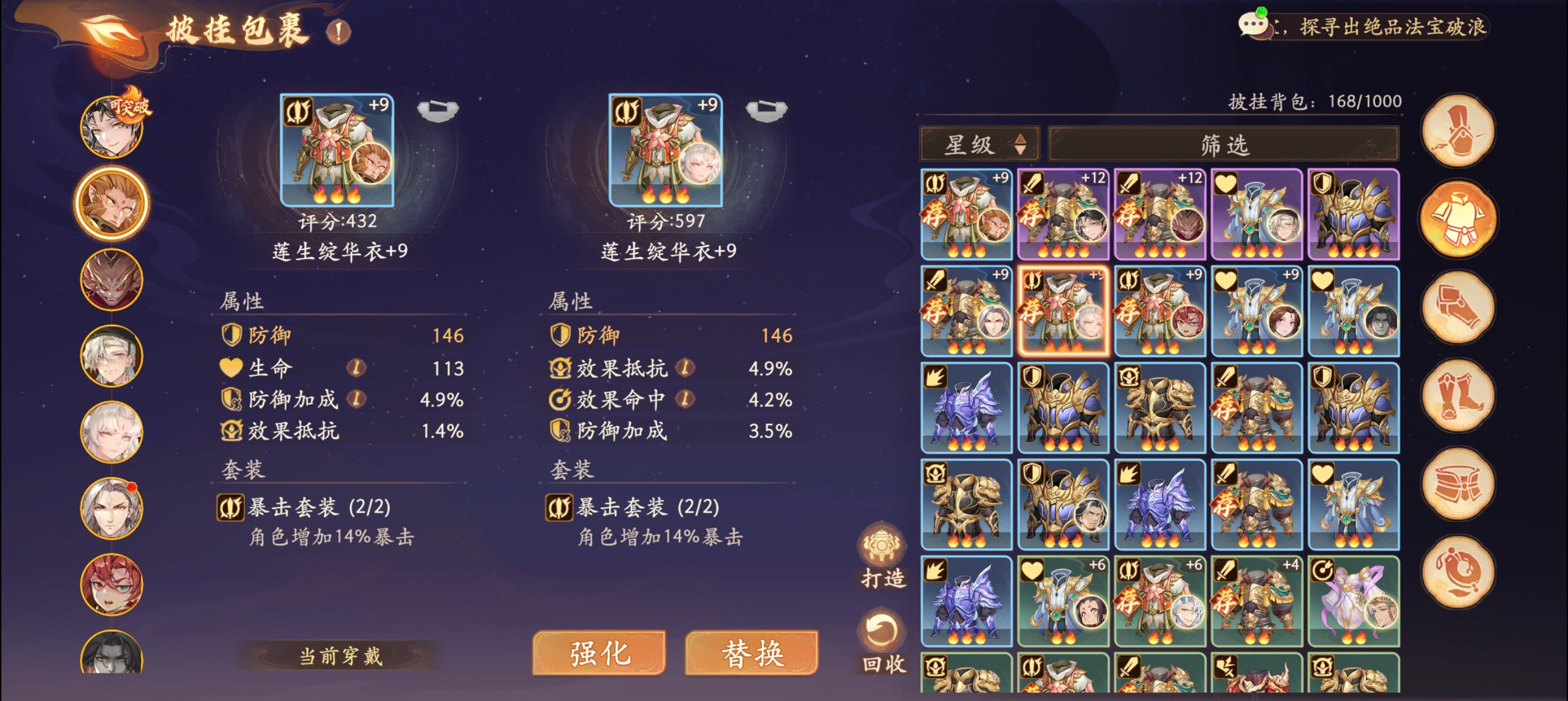 ②比如:孙悟空是破军职业,定位是输出攻击类的角色,那么我们的套装优先考虑攻击类型的,攻击套装、暴击套装等。