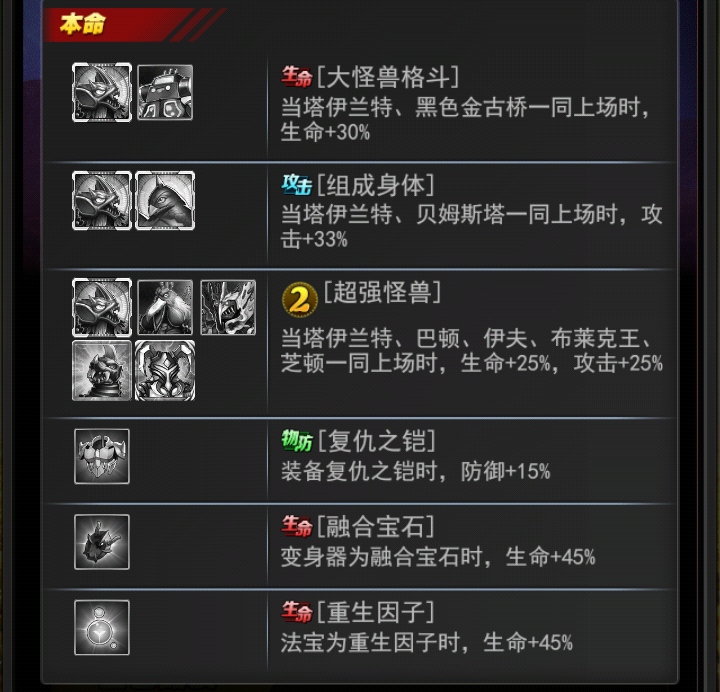 能量技能解析:对地方全体造成低比例伤害高概率,燃烧相当于是一个红色领域,如果想用这个大输出的话,可以在搭配一个红色领域,的生物提高燃烧伤害,拍40%的受伤率,受伤率这个可以叠加起来,最高可以代驾到60%,然后再用大招打伤害的话就会很疼,所以可以慢慢的磨掉他