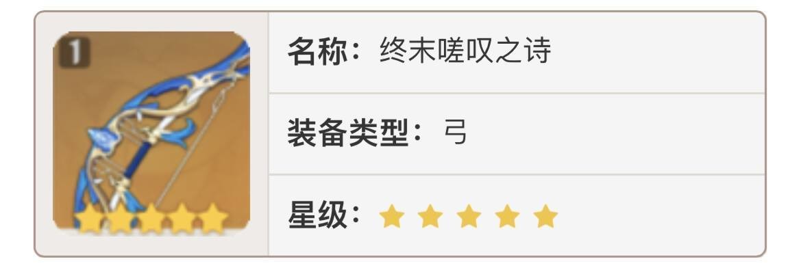 总体来说下半武器池质量比上半更高,为莱欧斯利抽专武的玩家歪到终末也不算亏,大多数角色都还是能为终末找到适合的归宿。不过不推荐专门定轨终末,毕竟即使没抽到终末,也还是有西风猎弓之类的武器可用,为辅助专门抽5星武器的性价比不高,不需要在一棵树上吊死。
