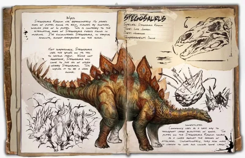 4、剑龙:慢慢发展建议驯剑龙,攻高有击退,而且打果子特别方便,停在有草的地方就行了,草一刷新,骑上左右甩两尾巴,果子就够用了。缺点是移速特别慢。