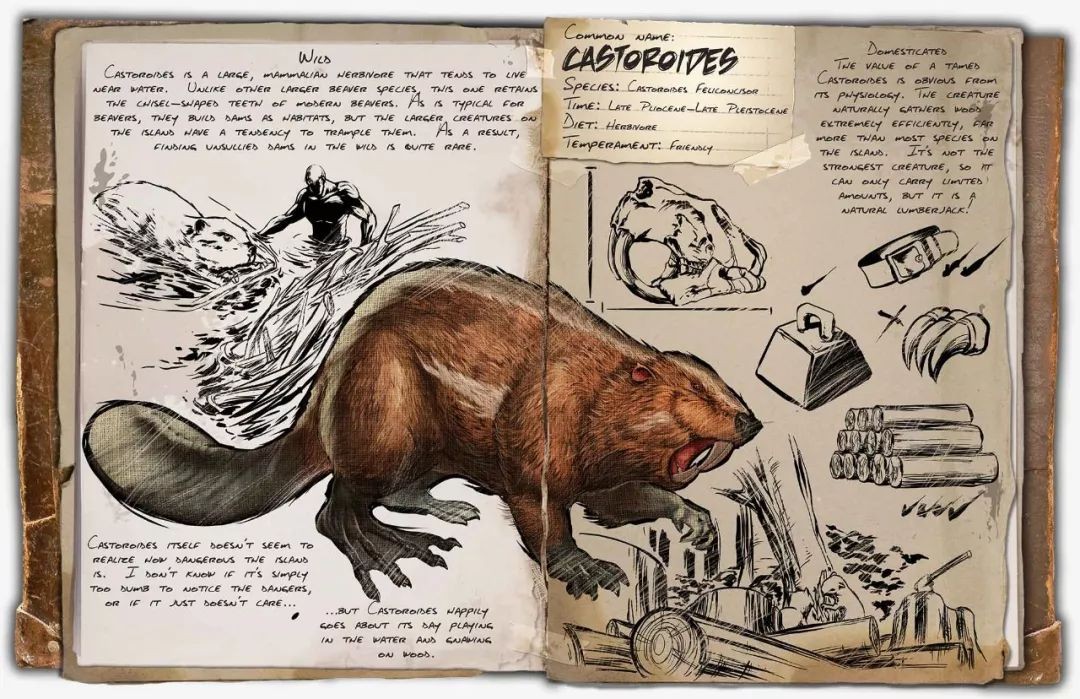 3、巨河狸,巨河狸是采集木头的能手,野生的巨河狸在一般小池塘旁边都可以找到。但可不要觉的长的可爱就非常好抓,巨河狸的危险系数完全不亚于霸王龙,伤害非常之高。然而猛犸象+风神的组合是最后期伐木的终极组合。