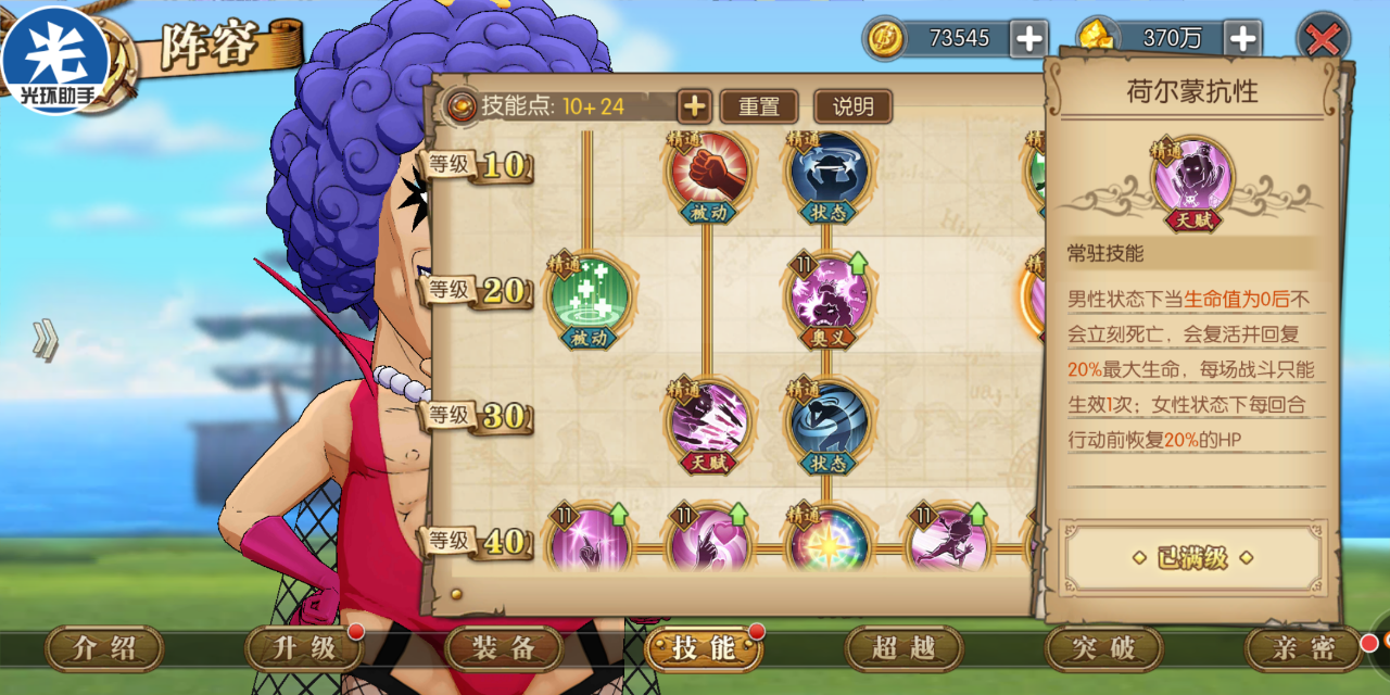 荷尔蒙抗性,复活在这个游戏里都是神技,保证人妖王第一回合不会被秒掉,变身之后还有类似战国的回复能力 ,..