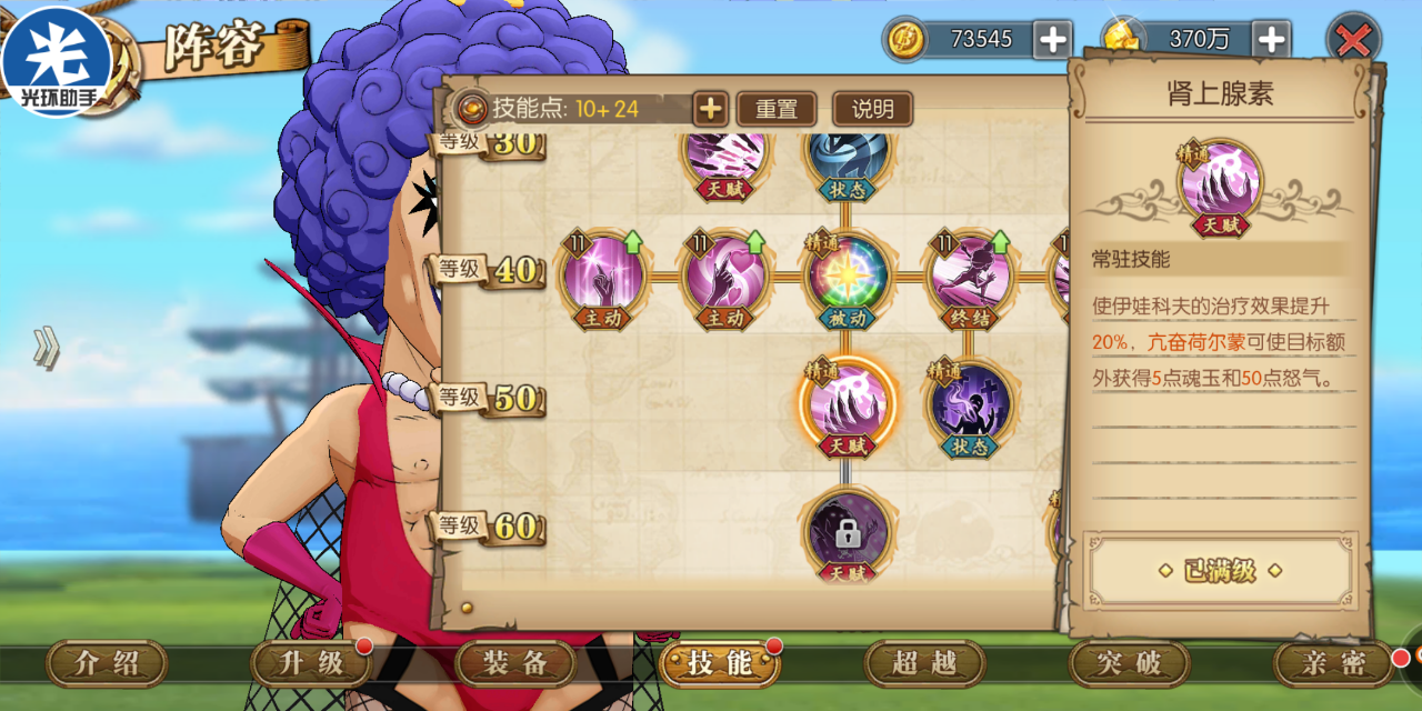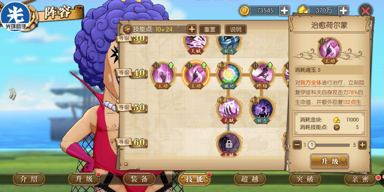 这是六星天赋,治疗加50怒气又加5魂玉,残局这个技能就很有统治力了,不过治疗的却是随机的,有时候很看脸