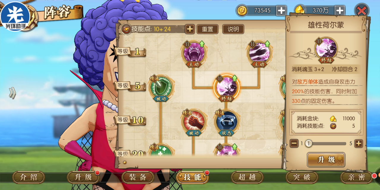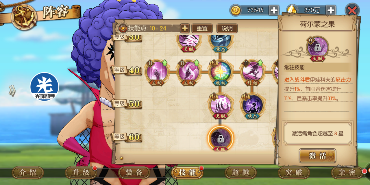 首先来了解一下角色,伊娃科夫在顶上战争出现,帮助路飞度过重重难关,可以说,没有人妖王,路飞已经死在海底监狱了,也不会成功救下艾斯,(虽然最后还是悲剧)在游戏里的设定,人妖王不属于海盗,属于其他势力(革命军势力游戏目前还没有出现)下面让我们一起看看人妖王·伊娃科夫的详细介绍
