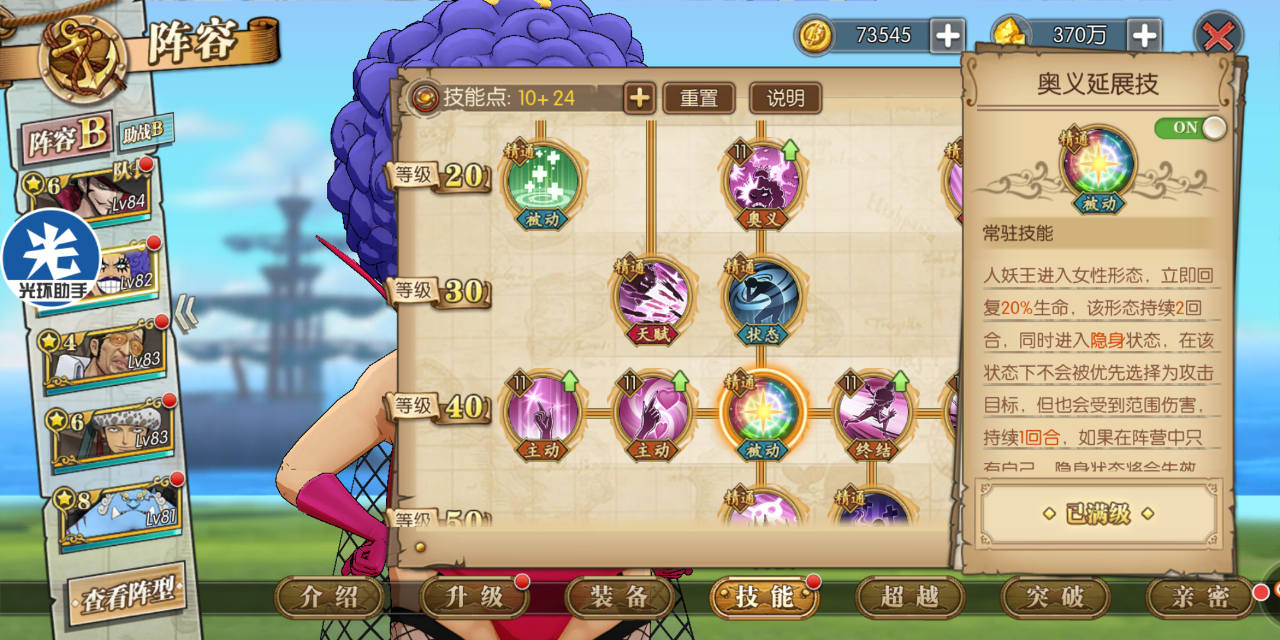 总结来说人妖王这个卡还是很有可玩性的,80级的buff加成是神技,试想一下3buff开局的阵容,雷利,鹰眼,老沙,女帝,人妖王,主打一回合,简直不到太恐怖,