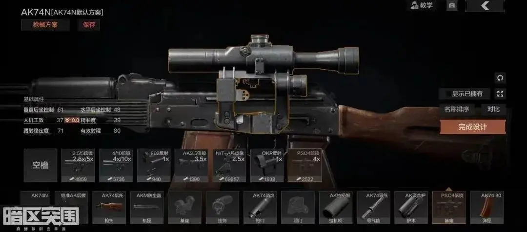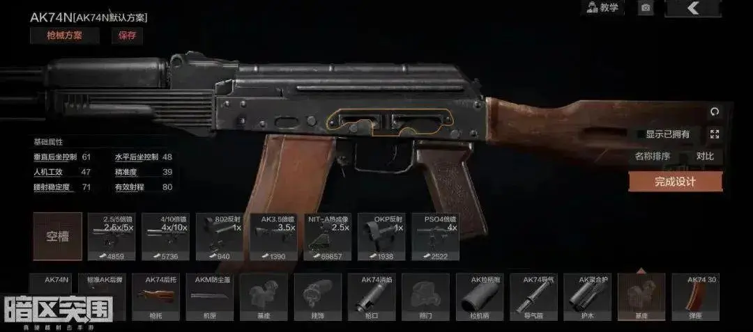 除了AK74N之外,还有AKS74N、AKMN、AKMSN等等名字中带“N”的AK,大家只要看到“N”直接去机匣上找燕尾槽就准没错了。