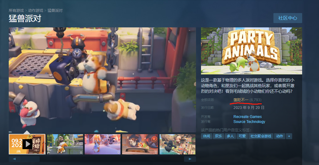 但发售到现在(9.22)过去了两天时间,《猛兽派对(party animals)》却只收获了“褒贬不一”的评价,在6793篇评测中只有将近50%的玩家为之好评。