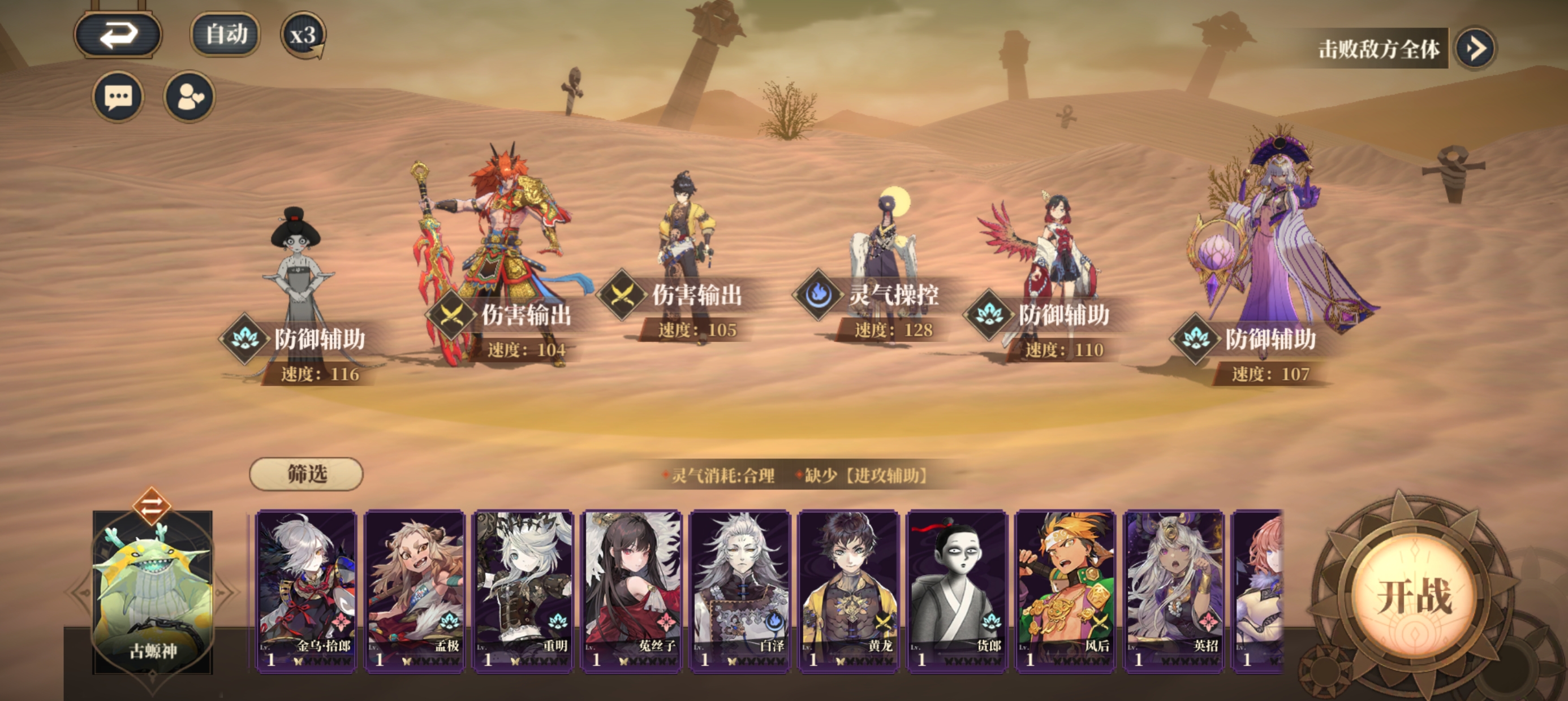 有时候会遇到满蝶天狗却,推图比较困难,不防试试重生天狗,培养黄龙主角,黄龙前期推图还是T0极其舒服的。另外推荐蜃+3防御辅助,生存拉满,活着才有输出。目的是集火让对面减员,慢慢磨,打持续战。