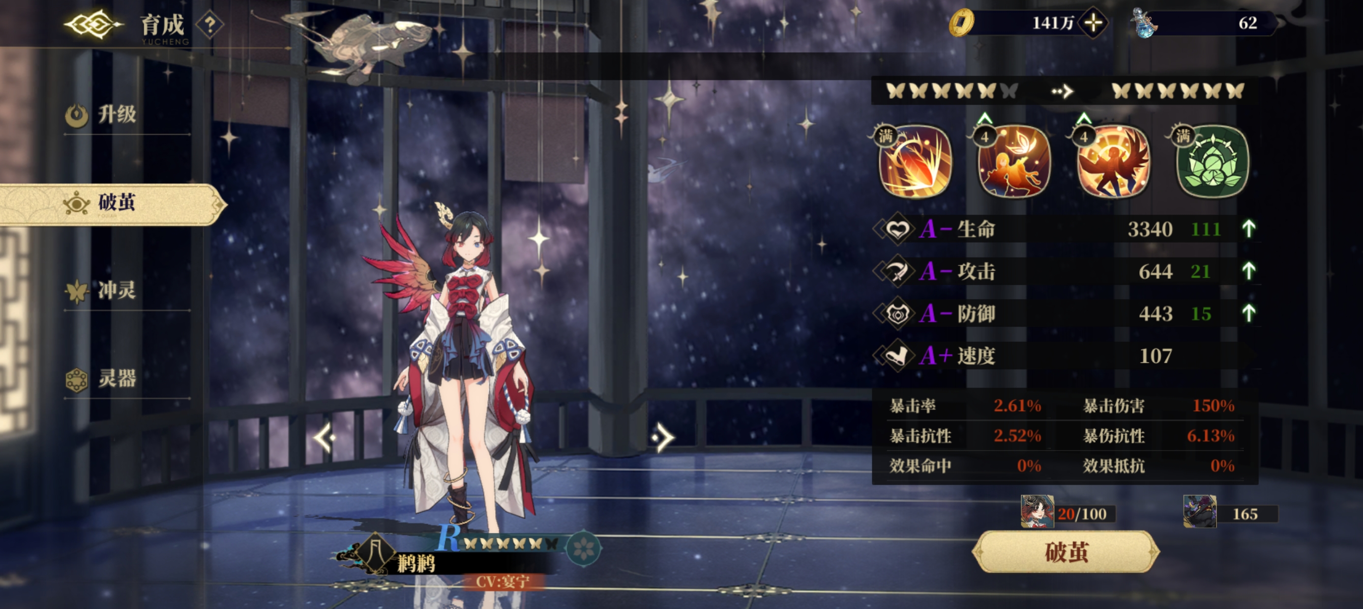 一速-霄明-速度-抵抗率-暴击抗 带嗷呜( 生命)