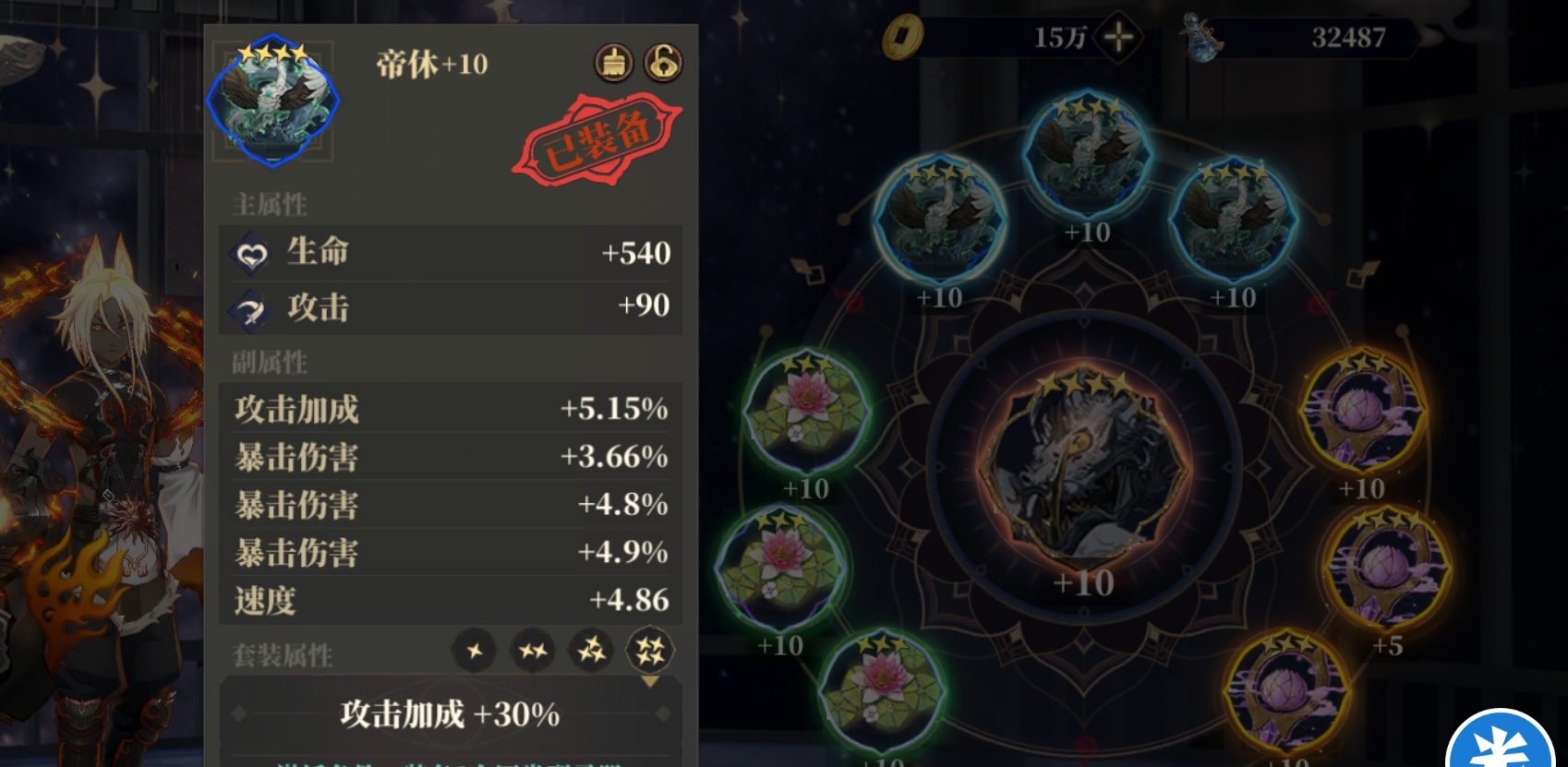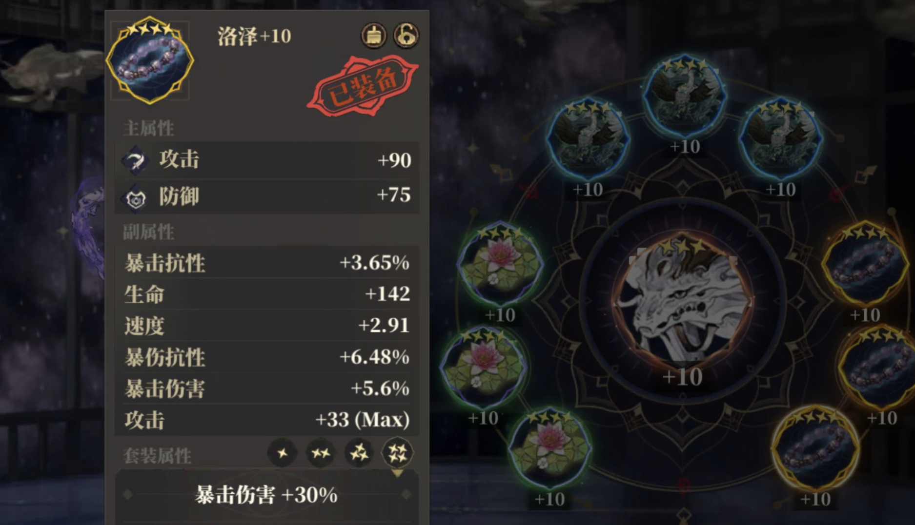 前期灵器一定要套装搭配。每个孔位都要组成一套,才有套装属性加成。